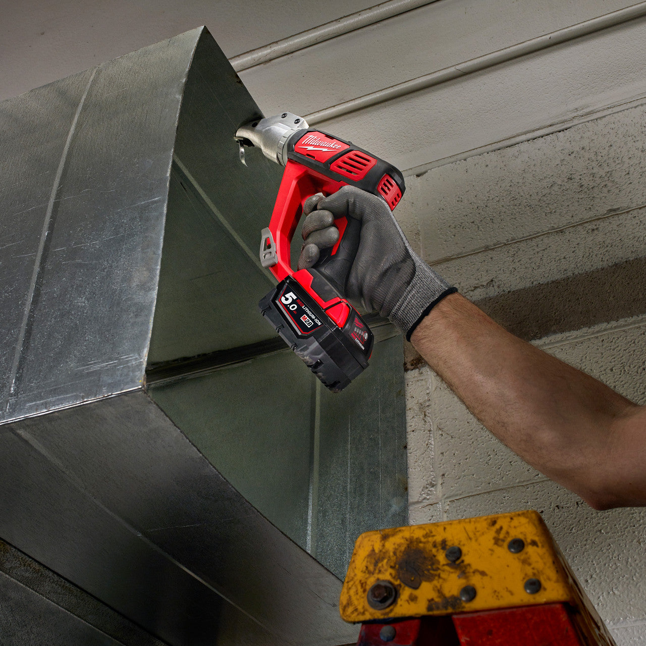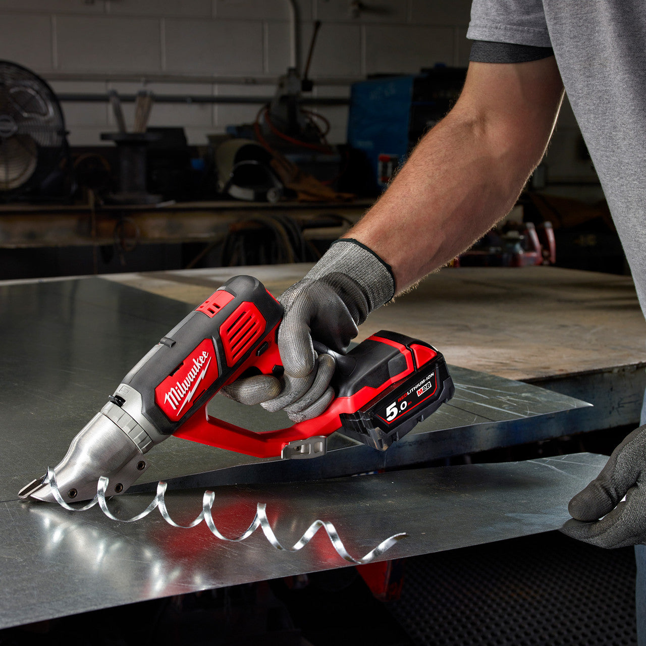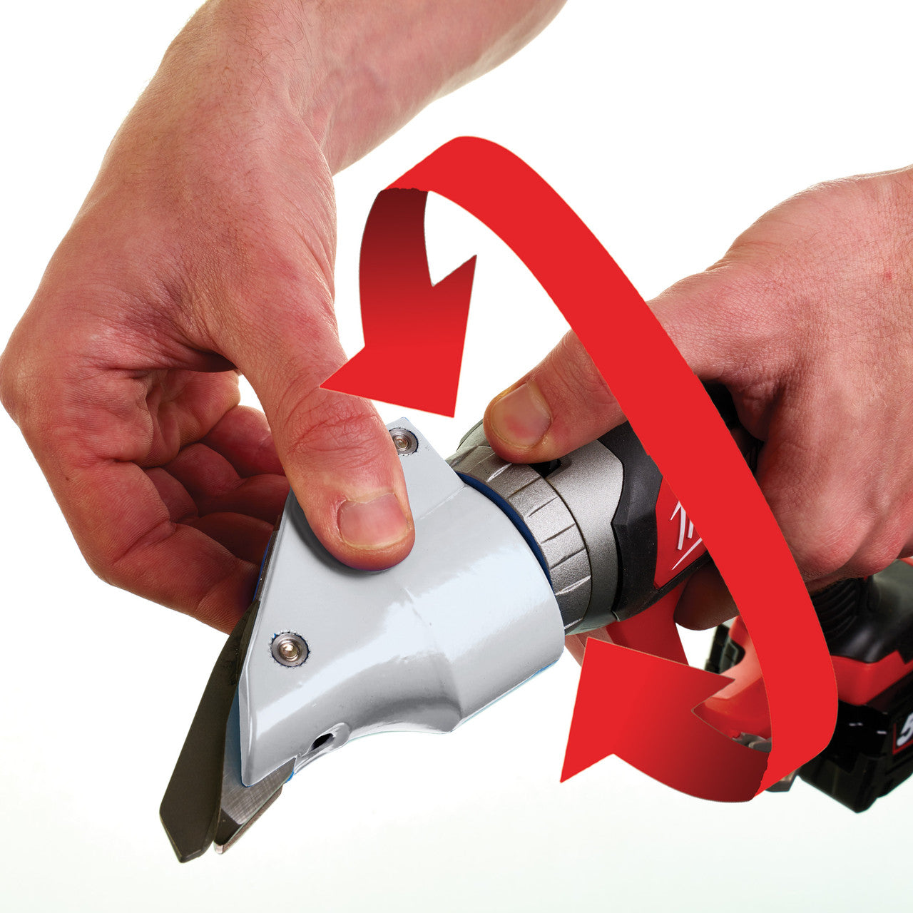 The Milwaukee M18 BMS12-0 is a Body Only 18V Brushed Metal Shear giving accurate cuts with a maximum cutting depth of 2.0mm in steel. It has a unique 360° tool-free rotating head with 12 locking positions to access tight spaces and increase user comfort. A variable speed trigger provides extra control during cutting. Sold without a battery or charger in a cardboard box.
