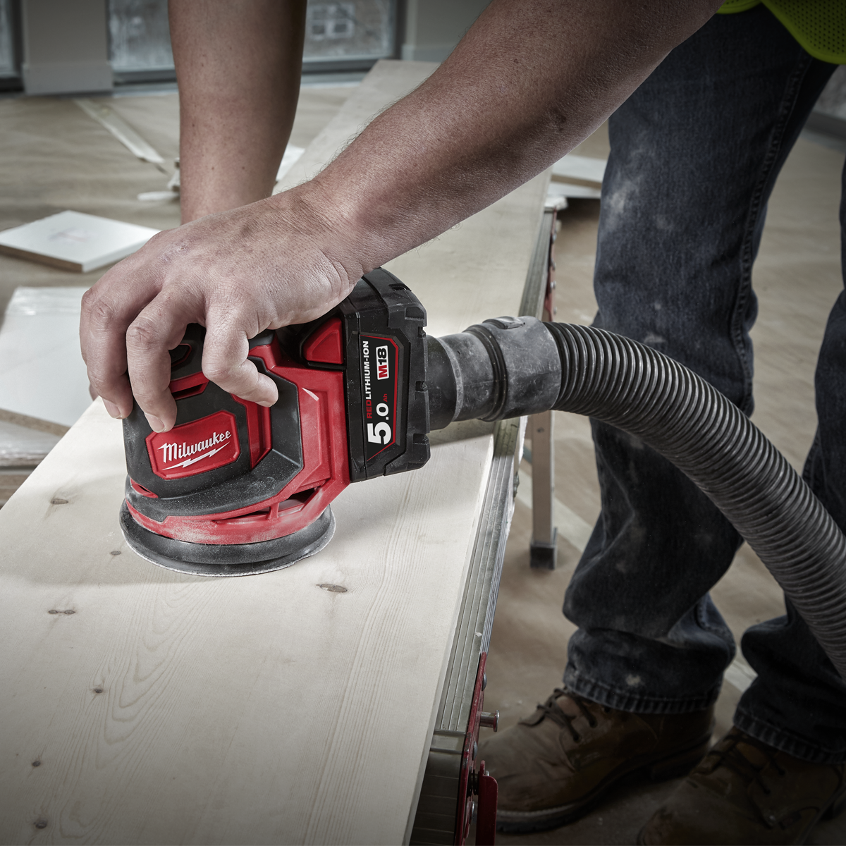 The changing of sanding discs has never been easier with The Milwaukee M18 BOS125-0 18V Random Orbit Sander