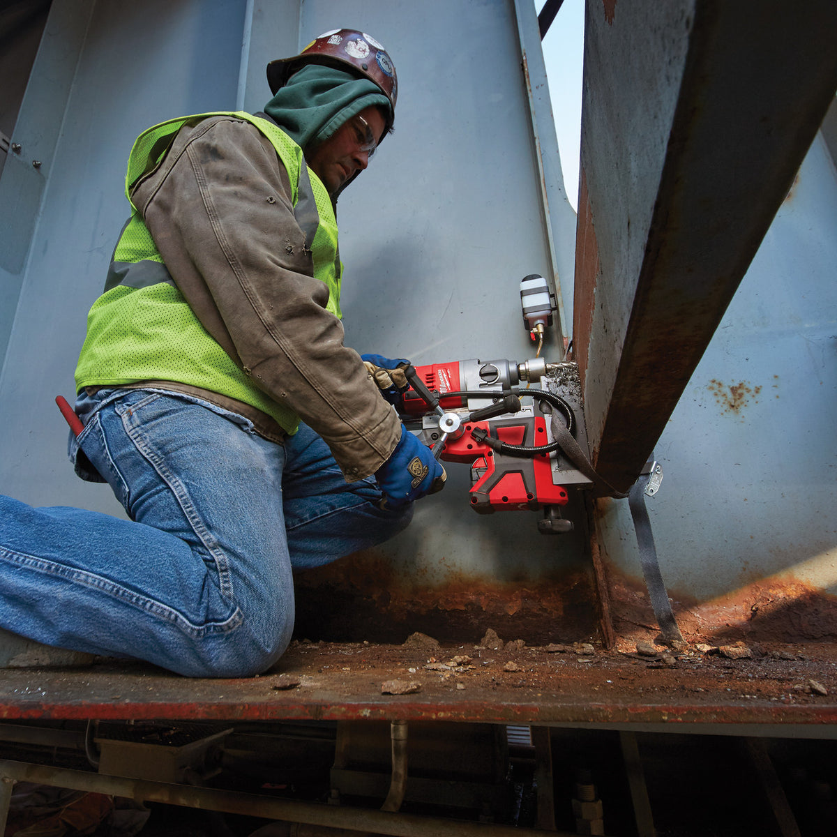 The Milwaukee M18 FMDP-502C FUEL Magnetic Drill Press has a keyless 19mm Weldon reception for fast and easy accessory change
