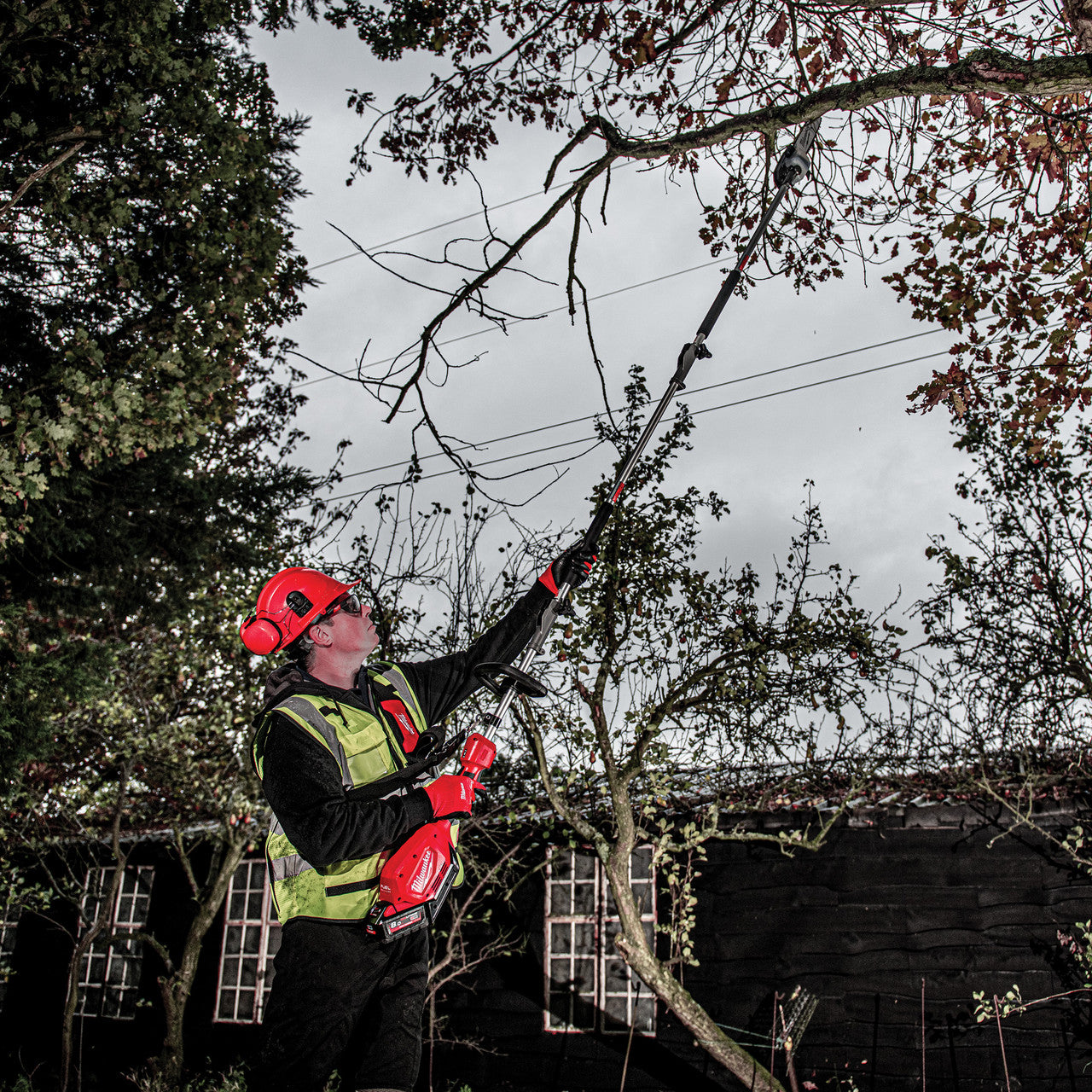 - Easily adds an additional 91cm reach to Milwaukee outdoor power head chainsaw and hedge trimmer attachments making the tool much safer to use without the need for a ladder