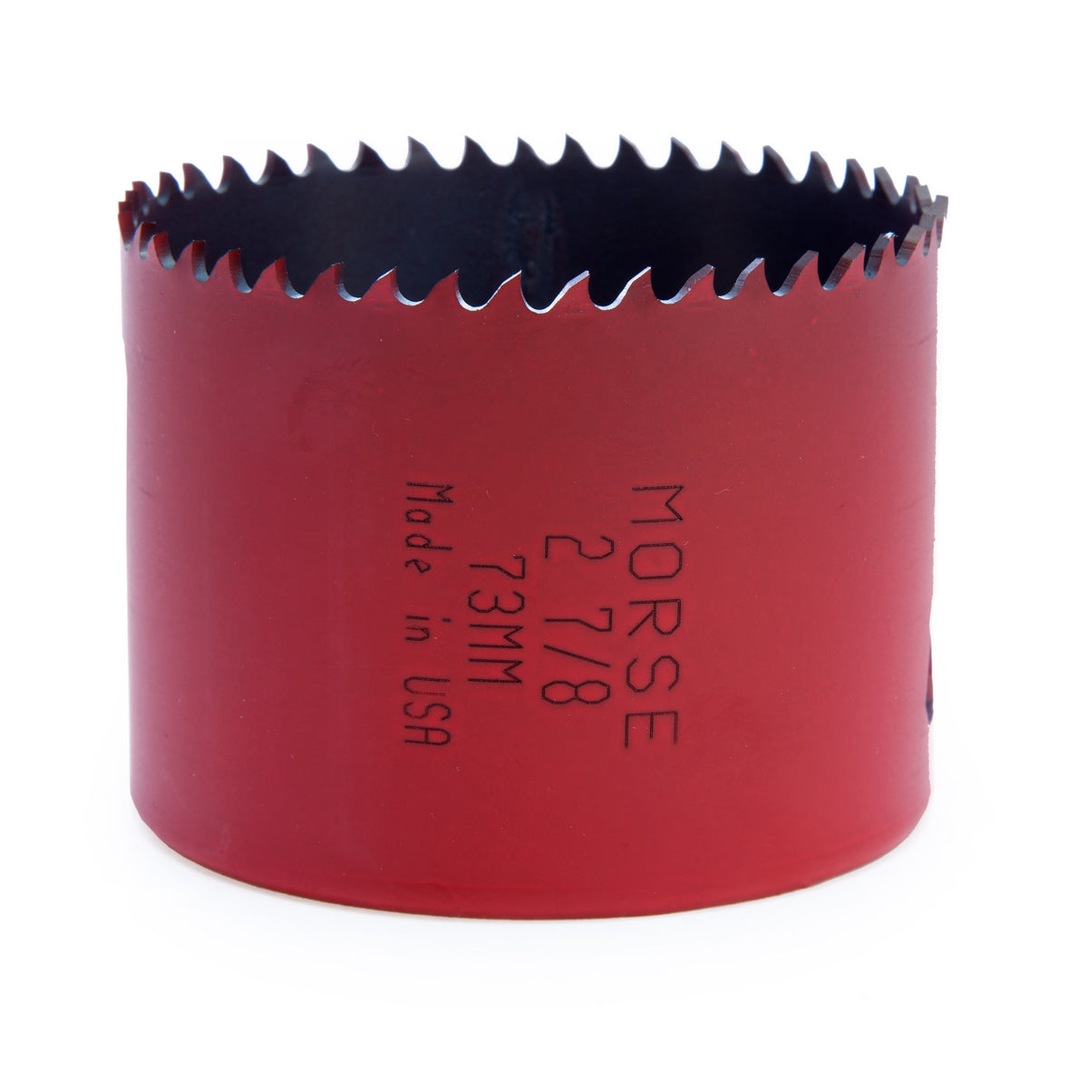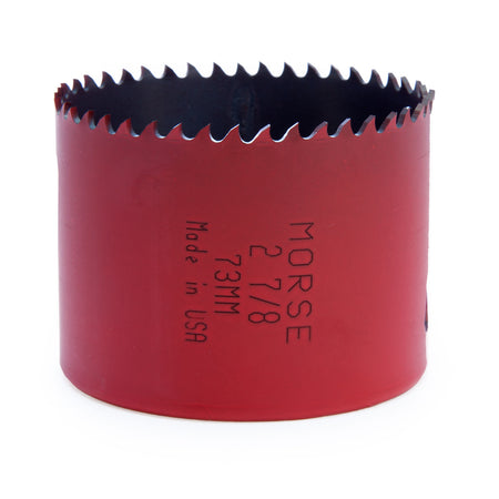 The Morse MHS46 (177467) Bi-Metal Hole Saw has a diameter 2. 7/8in - 73mm. The All-New Advanced Bi-Metal Hole Saw by Morse is their latest sawing innovation, a simple optimized powerhouse. Engineered for optimum cutting performance and longer life. The exceptional durability yields cost per cut savings over other saws. Applications in: Wood, plastic, machinable metals, stainless steel alloys, nail-embedded wood. Sold without Arbor or Pilot Drill. Compatible with Morse MA45PS (139038) 7/16in Hex Pin Arbor.
