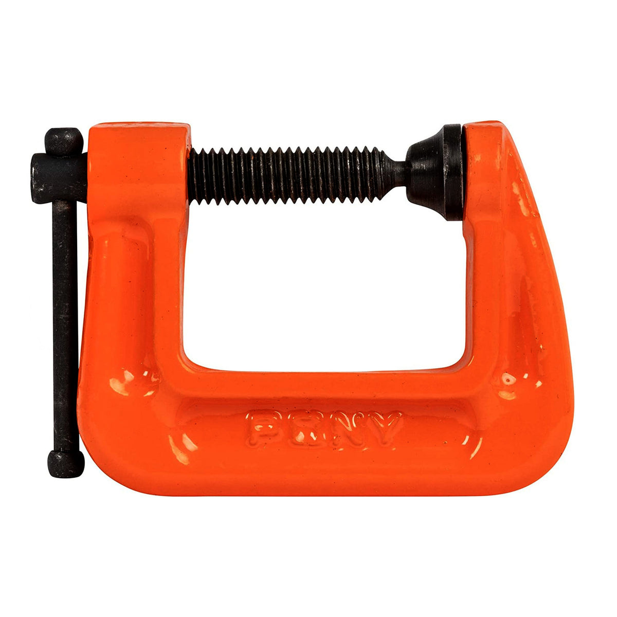 The 1 Inch Pony 2610 C-clamp is part of America's most popular and complete line. The smoothly cut, acme-threaded steel screw is zinc plated and protected with a black finish for lasting durability. The clamp casting is made with ductile iron for strength before receiving a powder-coated Pony-orange finish. Available in a wide variety of sizes and clamping forces, all with full-closing screws.