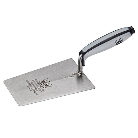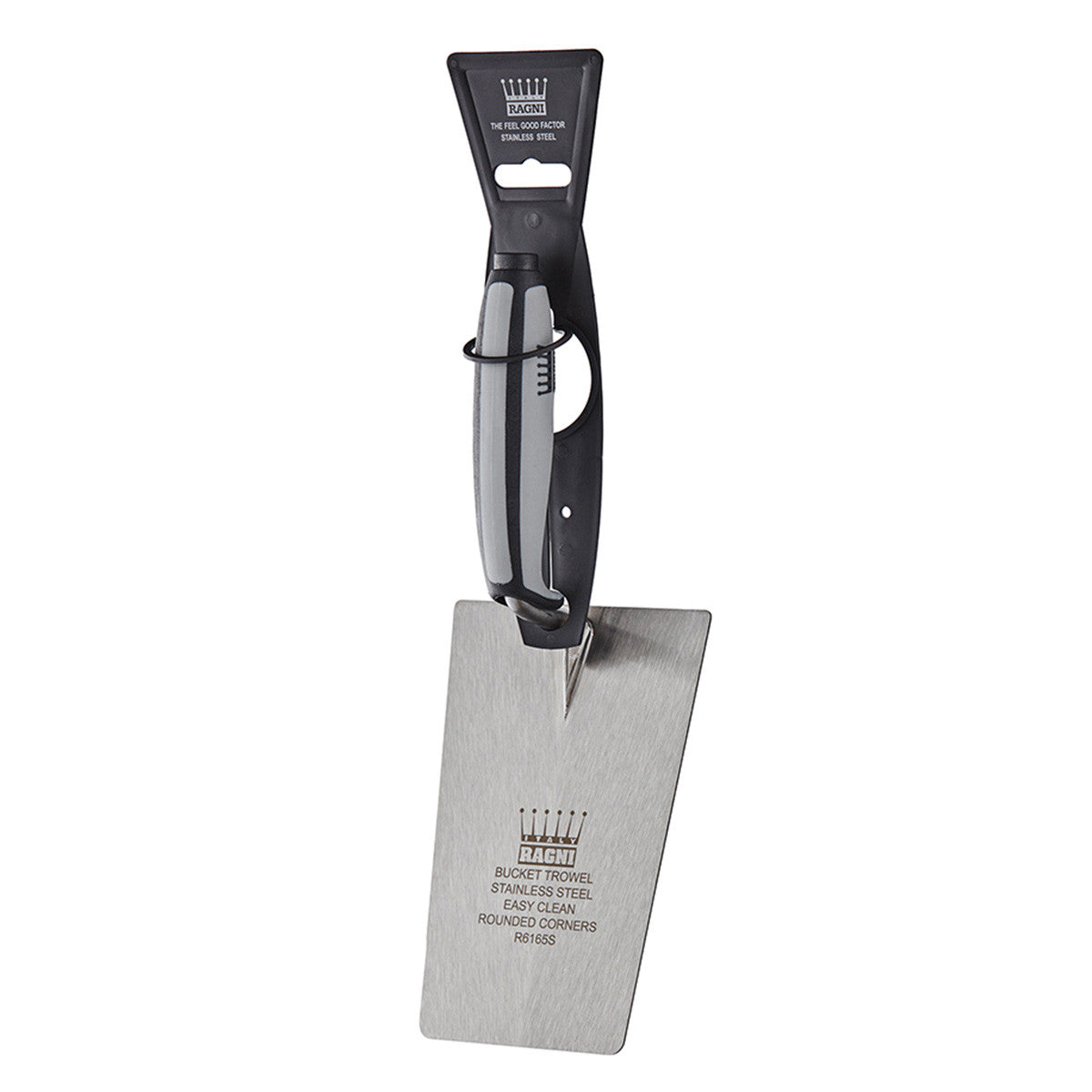Ragni Stainless Steel bucket trowel 6.5” blade with rounded corners and soft grip handle