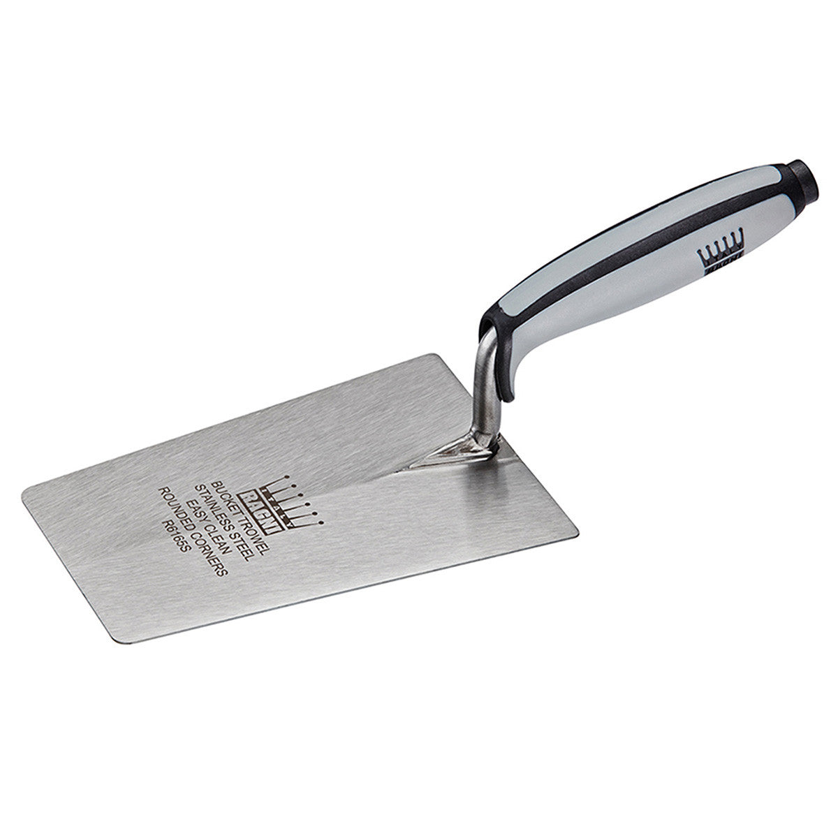 The Ragni R6165S is made from Stainless Steel and shaped with rounded corners so as not to scratch the inside of the bucket when plastering. Fitted with a soft grip handle for user comfort.