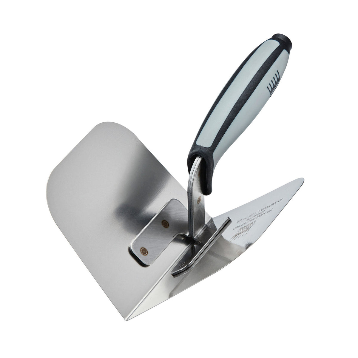 This Ragni Internal Corner Trowel is made from high quality stainless steel and has a hold-fast, non-slip handle with a finger guard. Its shape prevents digging in. The trowel has a radius of 103°.