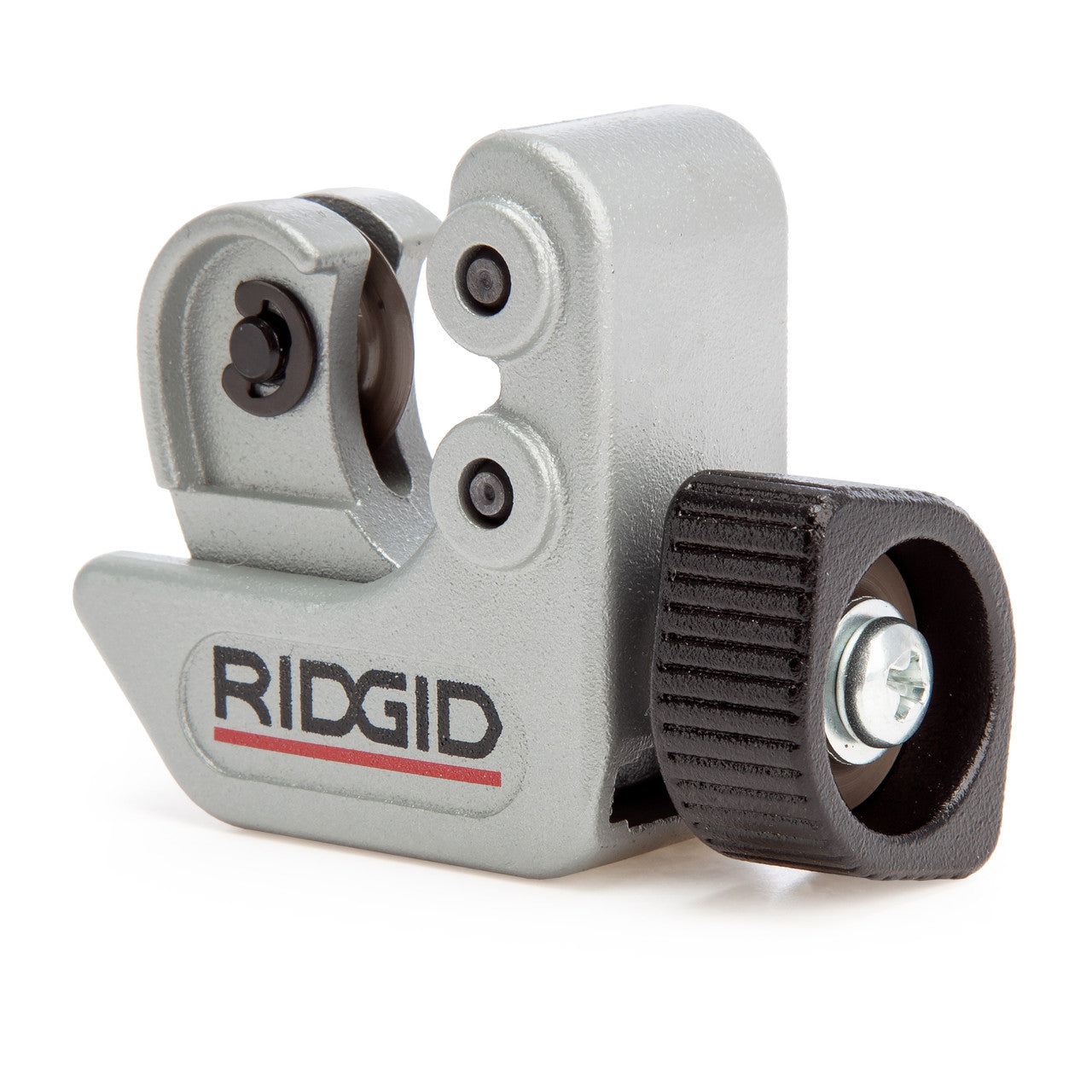 The Ridgid Model 101 is designed for pipe cutting in confined spaces. Although it is small it has a pipe cutting diameter between 6 and 28mm or 1/4 - 1. 1/8 Inches. It will cut hard and soft copper, aluminium, brass and plastic tubing. Comes with a Spare Wheel in the handle.