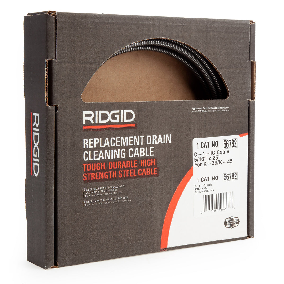 The Ridgid 56782 C1IC Inner Core Cable is 25 feet / 7.6 metres long and suitable for K-39, K40, K-45 series Sink Machines and K-3800 Drum Machine