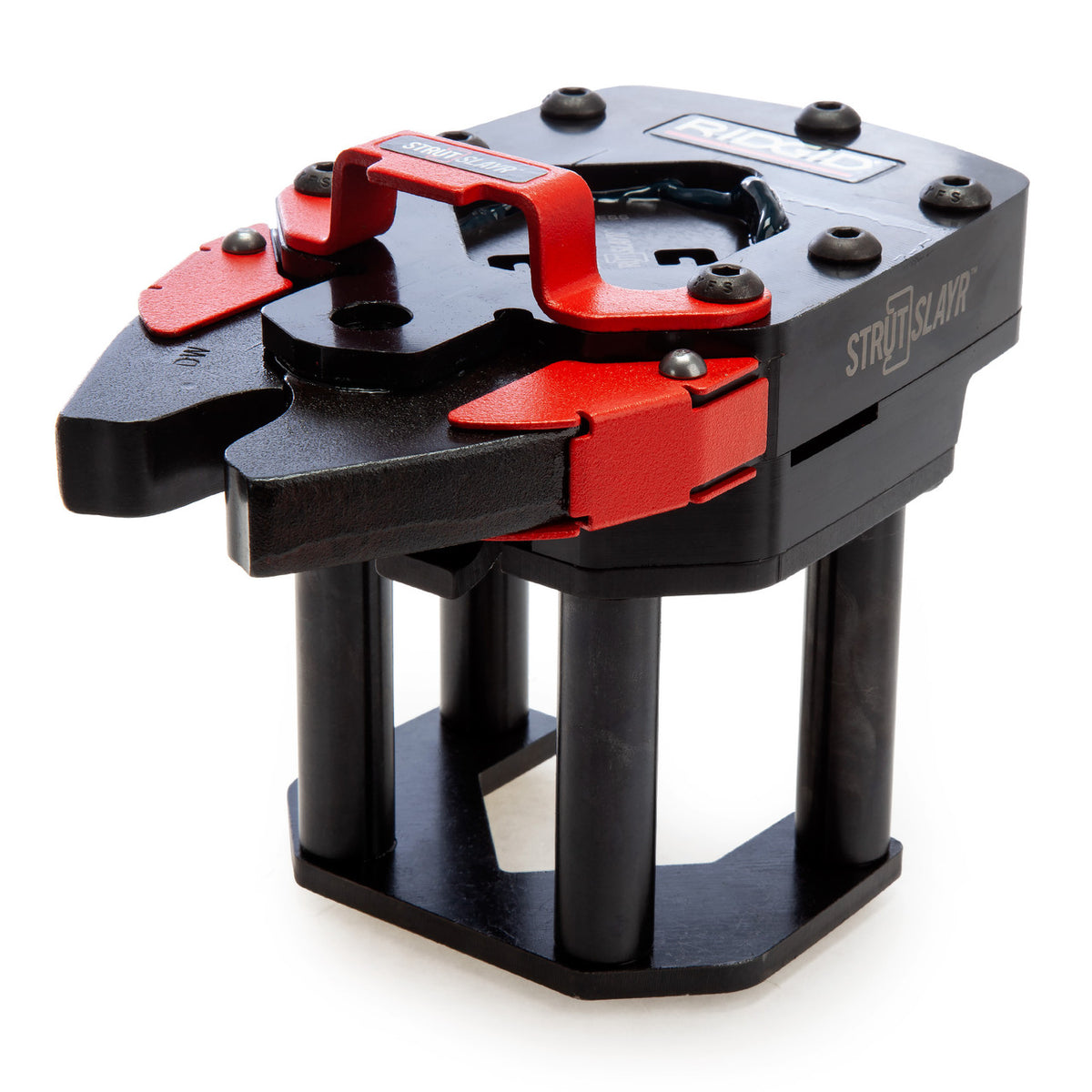 The RIDGID STRUTSLAYR delivers fab shop quality, burr-free strut channel cuts on the job site in 5 seconds or less. Compatible with RIDGID 32kN press tools, the STRUTSLAYR strut cutter offers a clean, consistent cut with a simple pull of a trigger: no grinding or sawing sparks. Press tools are not included. Not compatible with RIDGID 320-E or CT-400.