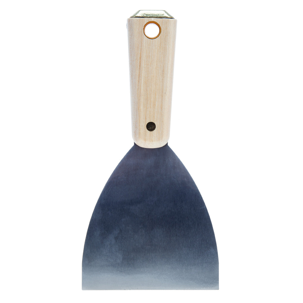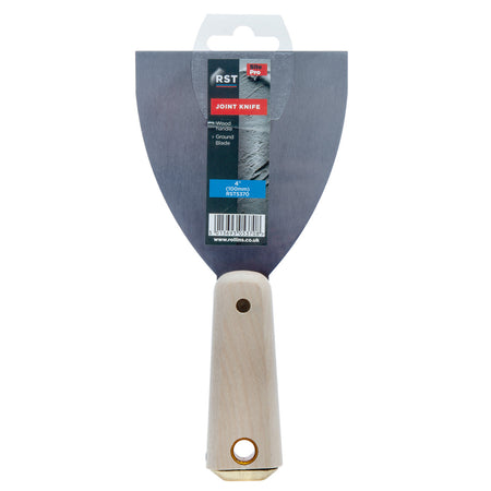 The RST RST5370 Joint Knife has a 100mm wide Blade designed for spreading compound over nails and screw indents on drywall. The blade has flexibility which allows the compound to be spread. A wooden handle gives a sturdy grip with a 'hammer head' metal end cap.