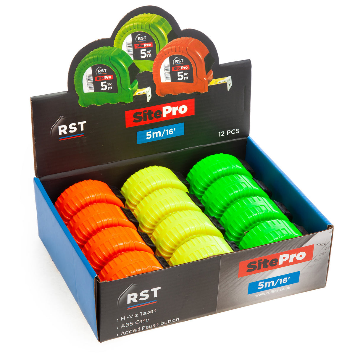 RST RSTDIS50 Metric/Imperial SitePro Hi-Viz Measuring Tapes 5m/16ft (Box Of 12)