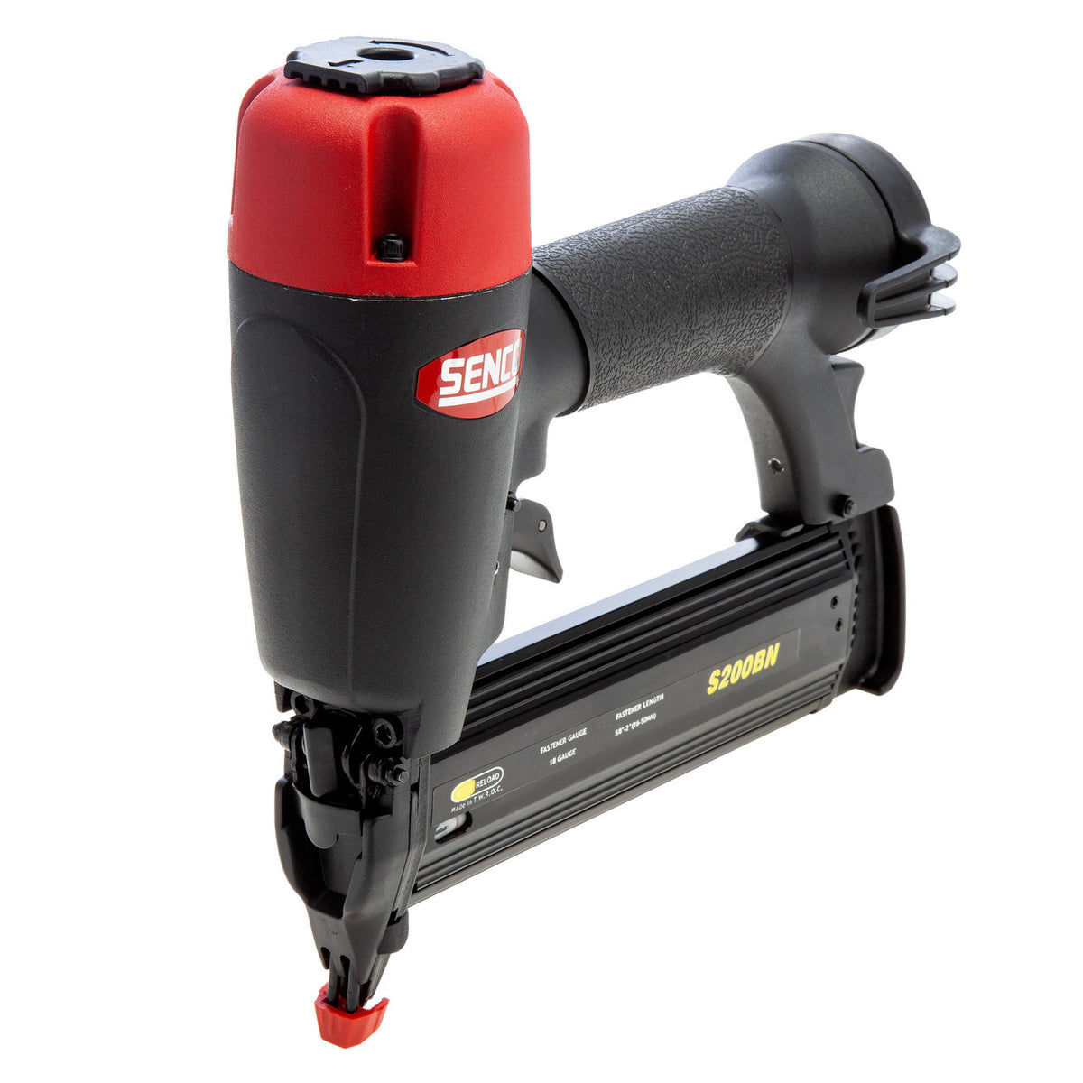 The S200BN Pneumatic Brad Nailer drives 1,2mm (AX) Brad Nails from 16 to 50mm. With special features including the easy clear nose piece, soft rubber grip and reload indicator, it makes your job easier. Being part of the SemiPro range, this Brad Nailer is designed for light-duty, semi-professional and DIY applications. SemiPro tools feature restrictive trigger action for maximum safety and are covered by SENCO's 1-Year warranty. Suited to the following applications: Furniture repair, cabinets, drawer assembly, case backs, chair rails, picture frames, and ornamentals.
