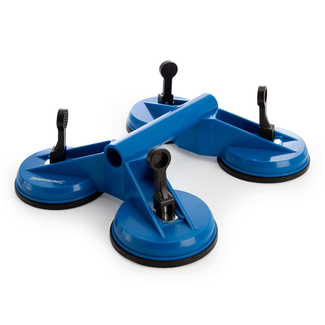 The Silverline 633580 quad suction pad is ideal for carrying and moving heavy awkward items such as glass, doors, windows and sheet metal. It has a maximum lifting capacity of 120kg and features strong rubber suction mouldings to prevent any damage occurring on the surface.