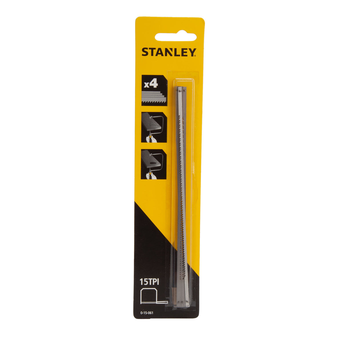 The Stanley 0-15-061 is a value pack containing four high-quality coping saw blades specifically designed to fit the Stanley 0-15-106 coping saw. These blades are crafted from tempered steel for exceptional durability and performance, ensuring clean, controlled cuts throughout your woodworking projects.