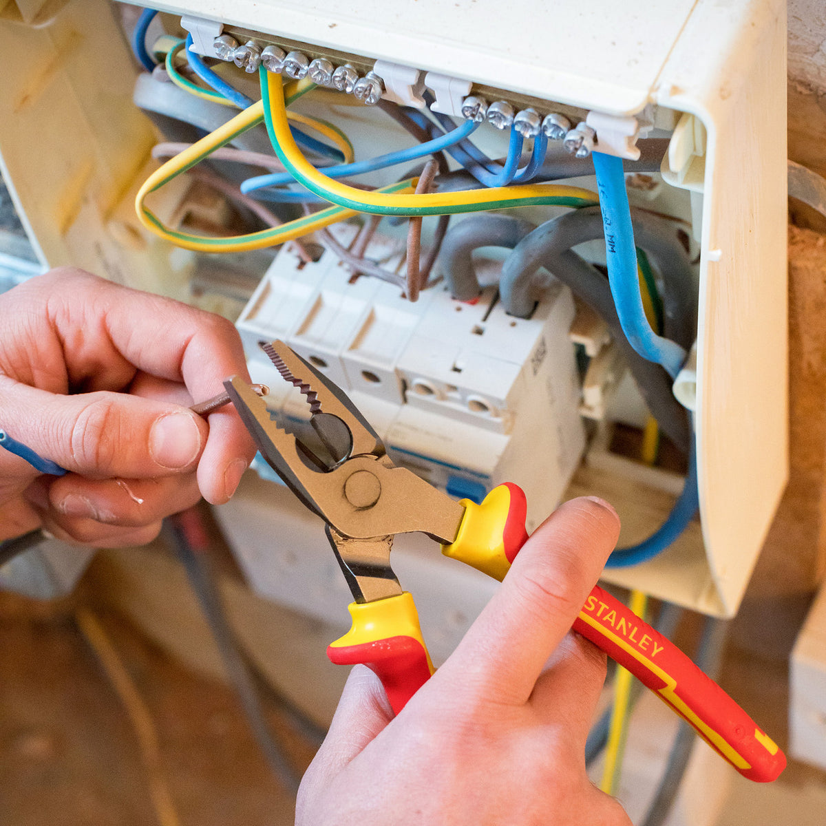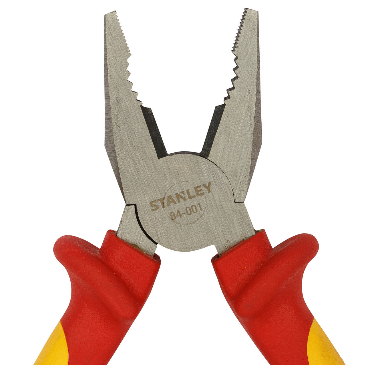 The Stanley 0-84-001 Combination Pliers are VDE Insulated for safe live line working up to 1000V. They are long-lasting and durable thanks to their induction-hardened blades and have comfortable ergonomic handles with a secure grip.