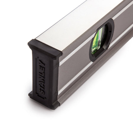 The Stanley 0-43-624 is up to 5 times stronger than other Stanley levels thanks to its rock-solid box-beam construction built into the level for stability. The solid acrylic block vials provide the best in class accuracy in 8 orientations of +/-0.5mm/m. They are magnified by 20% for improved all-round visibility.