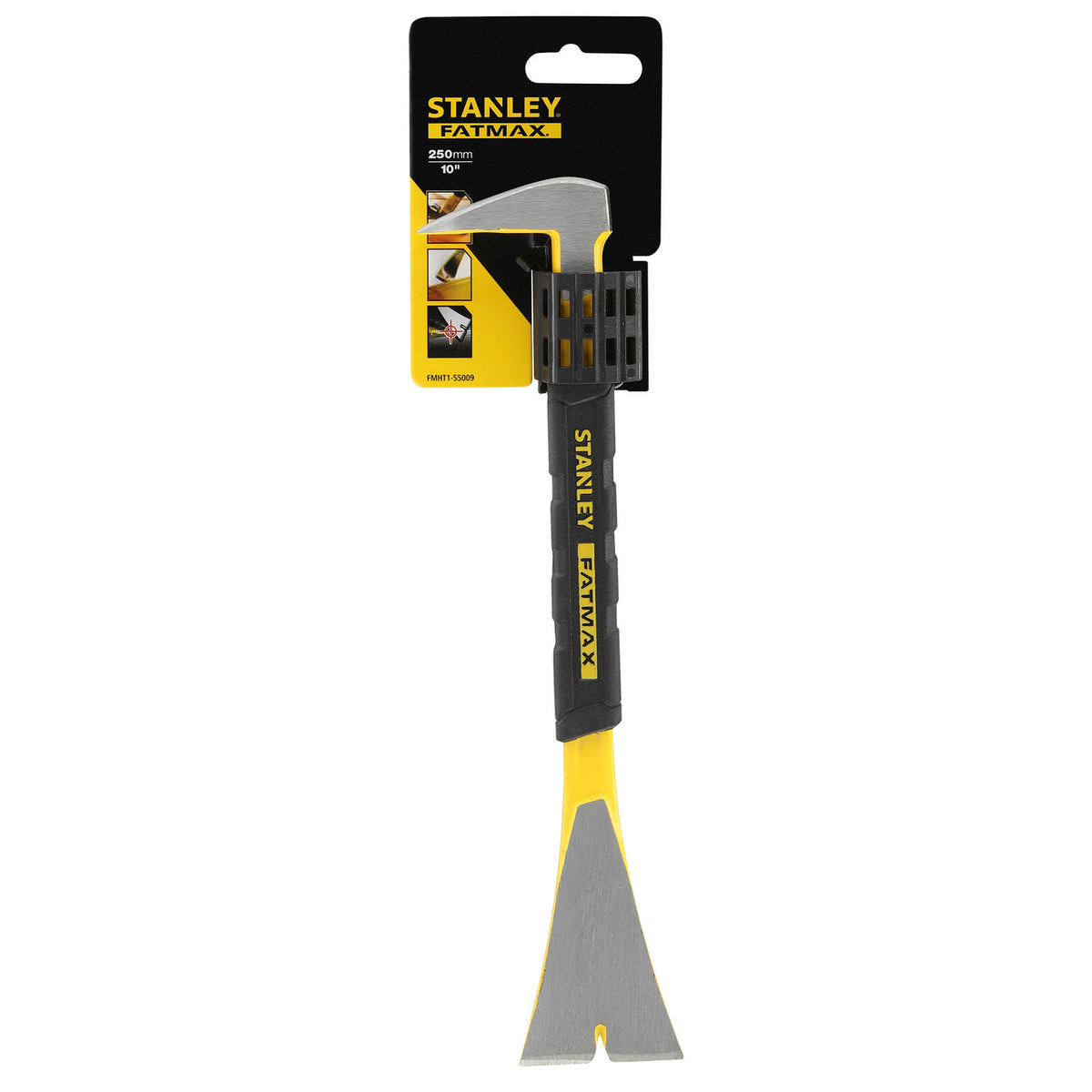 The Stanley FMHT1-55009 is a 250mm long Moulding Bar with 2 bevelled claws shaped for precision nail pulling. The Bar is made from Spring Steel for added durability. The grip is made from Non-slip material for better leverage.