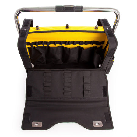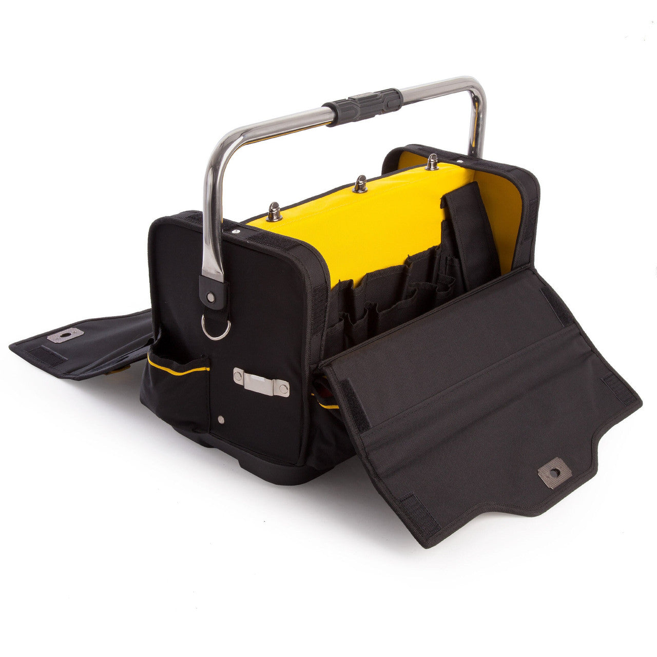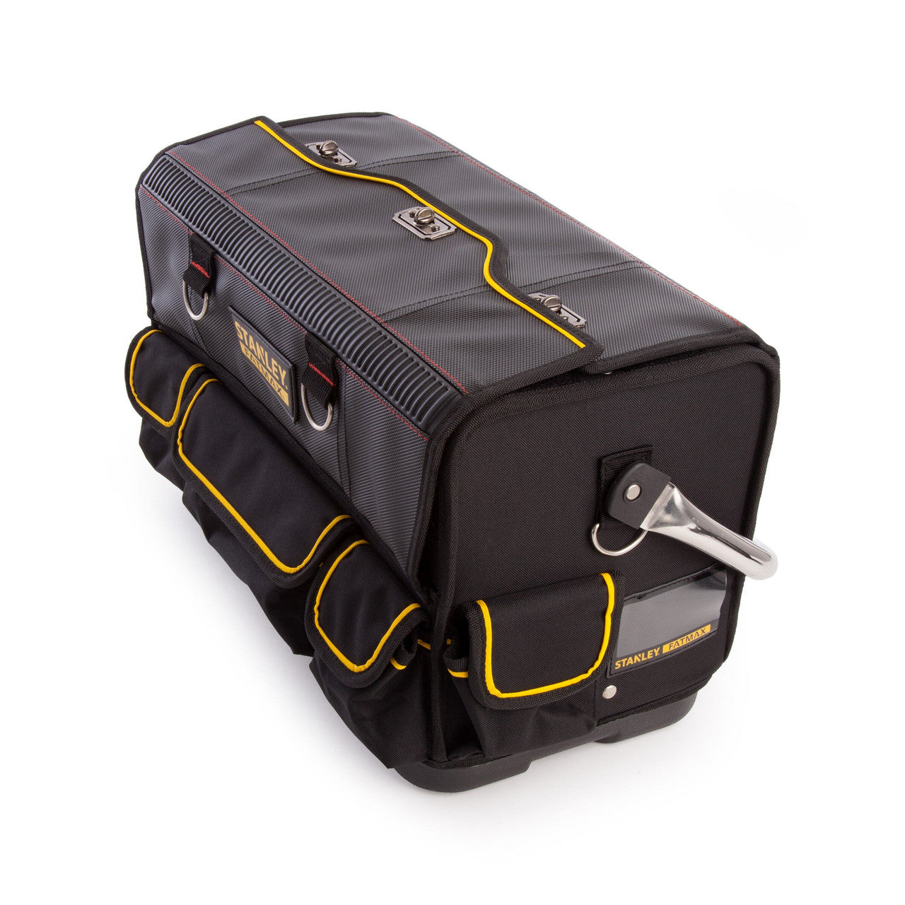 The Stanley FMST1-70719 is a well-designed bag specifically for the Plumbing trade. It allows neat organisation and storage of power tools, hand tools and accessories for easy access and transport. It has a light and strong construction with a waterproof base that can open up to a full workstation or you can store the basics in outside pockets.