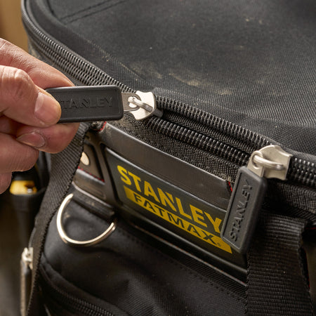 This massive Stanley Fatmax toolbag has 10 external pockets, 19 internal pockets and a hard waterproof polypropylene base. The rounded opening top design provides more storage space than a conventional toolbag. The vertical internal and external storage pocket give instant access to tools instead of the usual raking around looking for something.