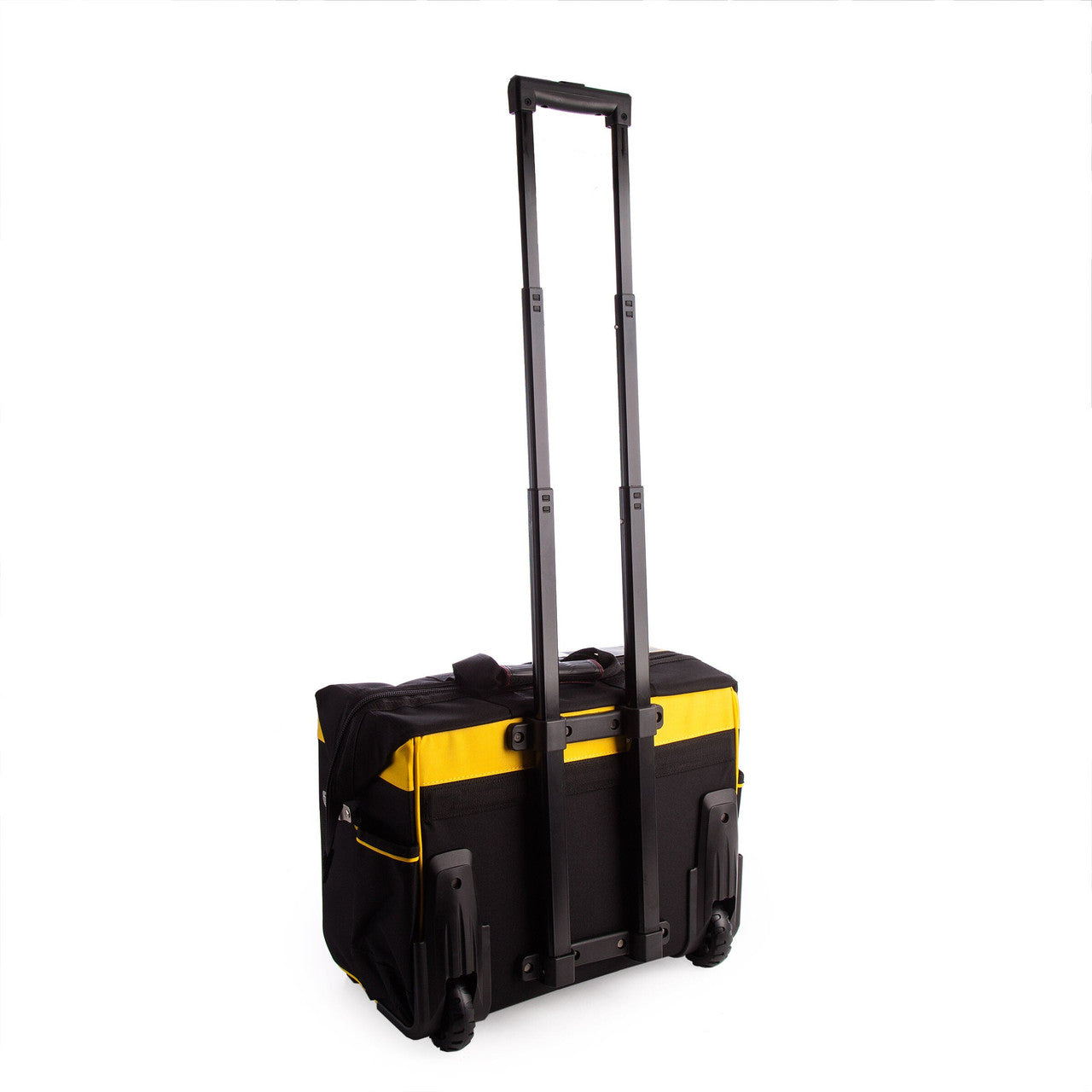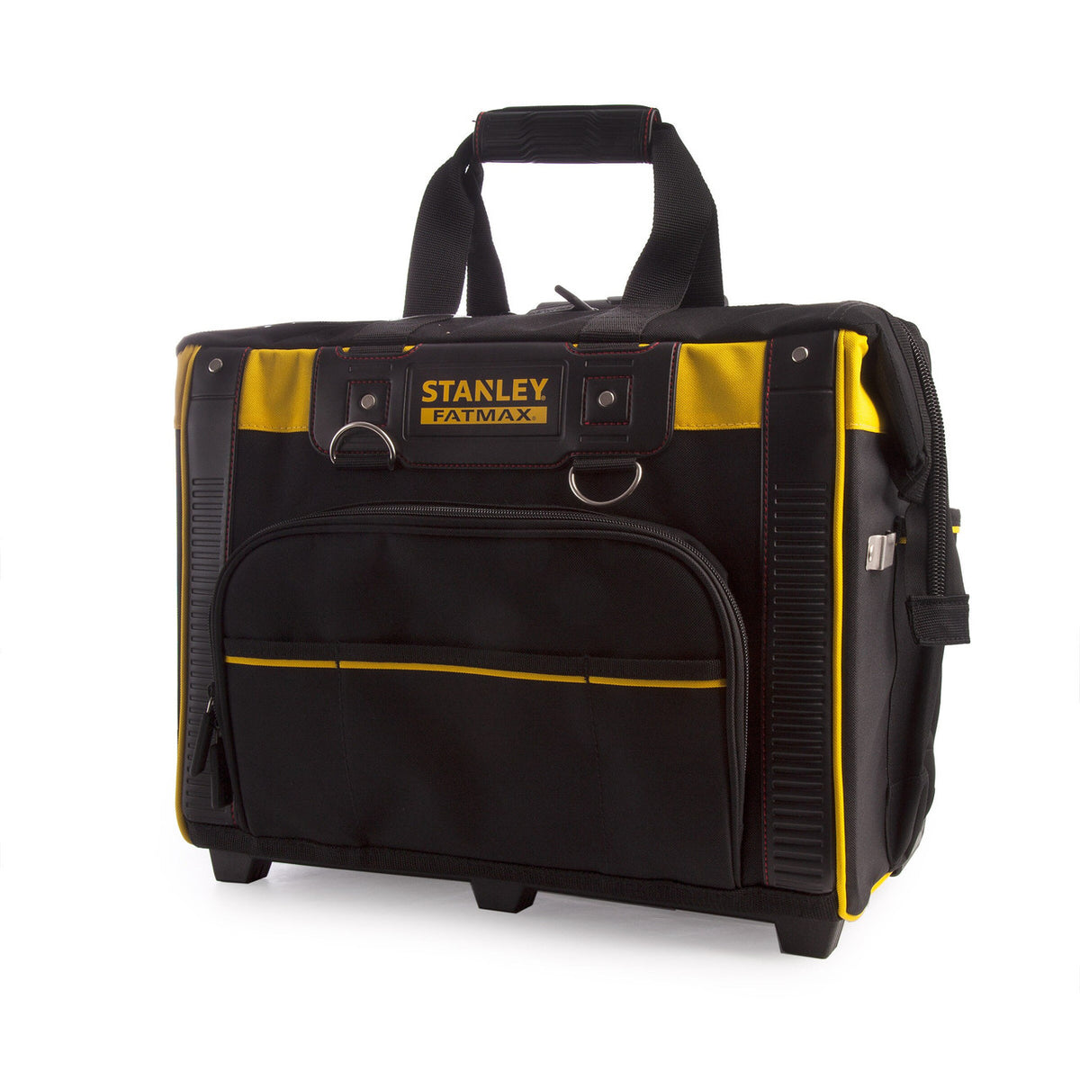 The Stanley FMST1-80148 FatMax bag on wheels has a heavy-duty telescopic handle and wheels for easy transportation and increased mobility. The bag has a large capacity and wide top opening for easy access, meaning it will hold multiple power tools, hand tools and accessories. Also has multiple pockets internally and externally for maximum organization.