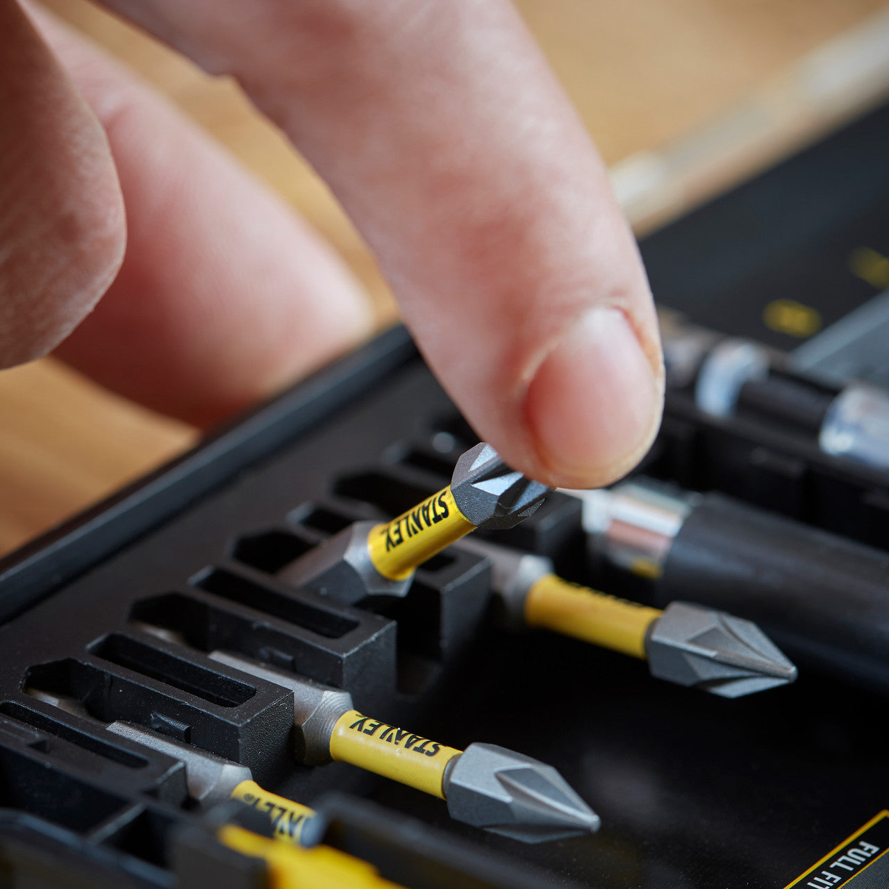 The Stanley STA88557 FatMax Impact Torsion Bit Set has precision-engineered bit heads to eliminate screw head rounding and wobble