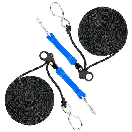 The Perfect Bungee PTDBL2PK Tie Down Straps in Blue have an overall length of 3.65m/12ft and are sold as a Pack of 2. Features a Blue FLEXAPURE constructed Bungee section that stretches to 2 times its original length. Using the Tie Down is quick and easy, with no parts to break. Simply attach the hook to one end, and pull the cord to attach to the other end. Release the tension easily by using the thumb hole. Featuring a rope lock made out of high-quality, high-strength thermoplastic Delrin, with 6.35mm - 1/4in solid braid polyester rope and 2 stainless steel hooks. The rated capacity is 158kg/350lb break strength, with 56kg/125lb of working load capacity. Black rope and rope lock with a 127mm/5in bungee.