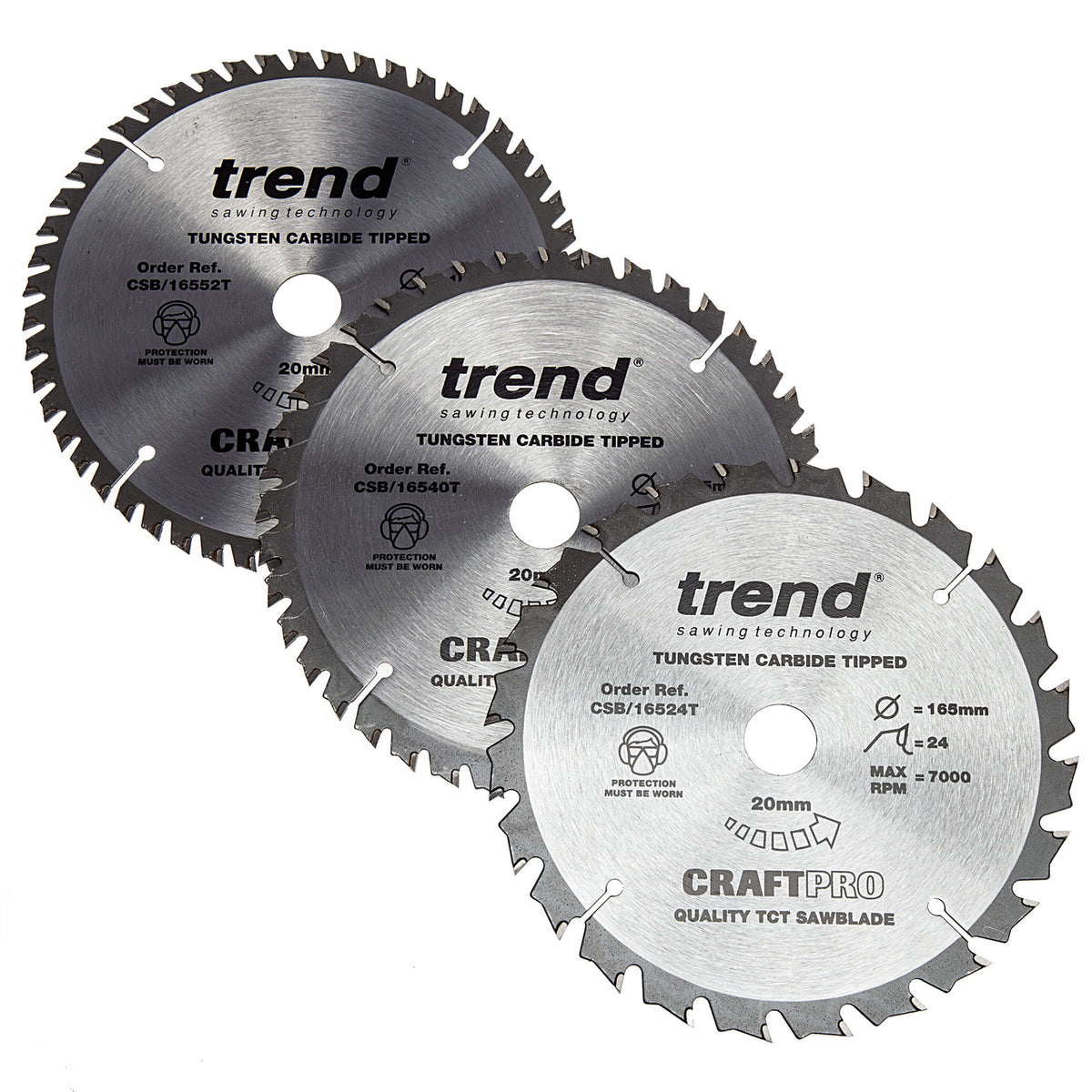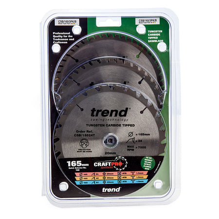 Trend CSB/165 CraftPro Saw Blades 165mm x 20mm x 24T, 40T & 52T (Pack of 3)