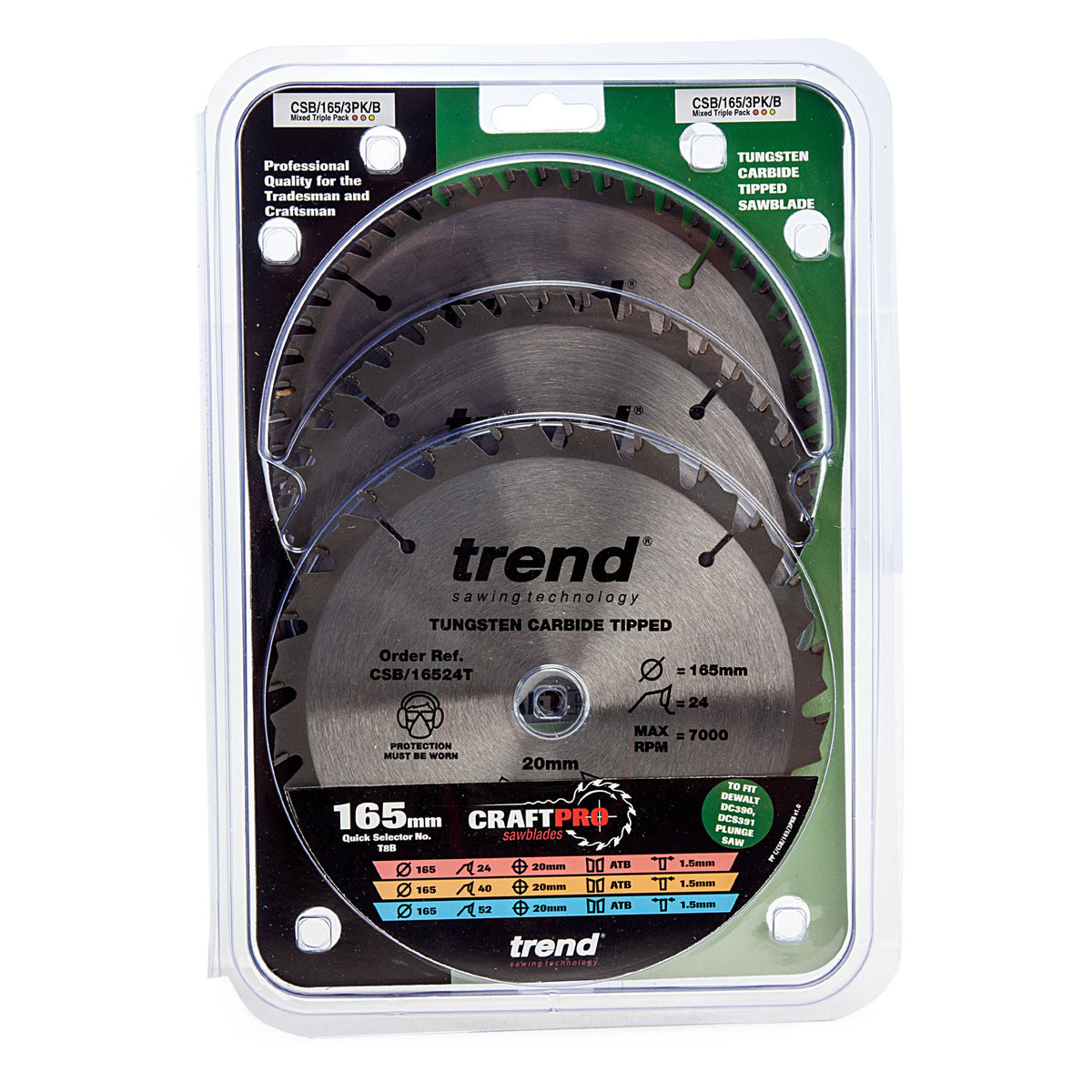 The Trend CSB/165 CraftPro Saw Blade Triple Pack is a multi-pack of Tungsten Carbide tipped saw blades designed to deliver a professional finish when working with abrasive materials