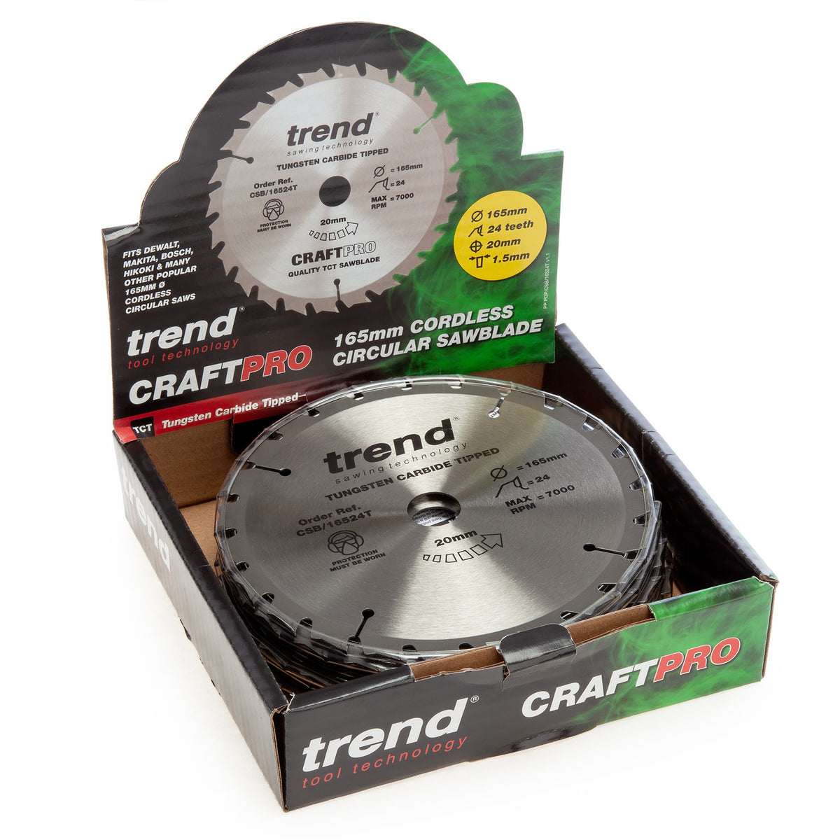 Trend Craft Pro 165mm diameter 20mm bore 24 tooth combination cut thin kerf saw blade for cordless circular saws 10 pack