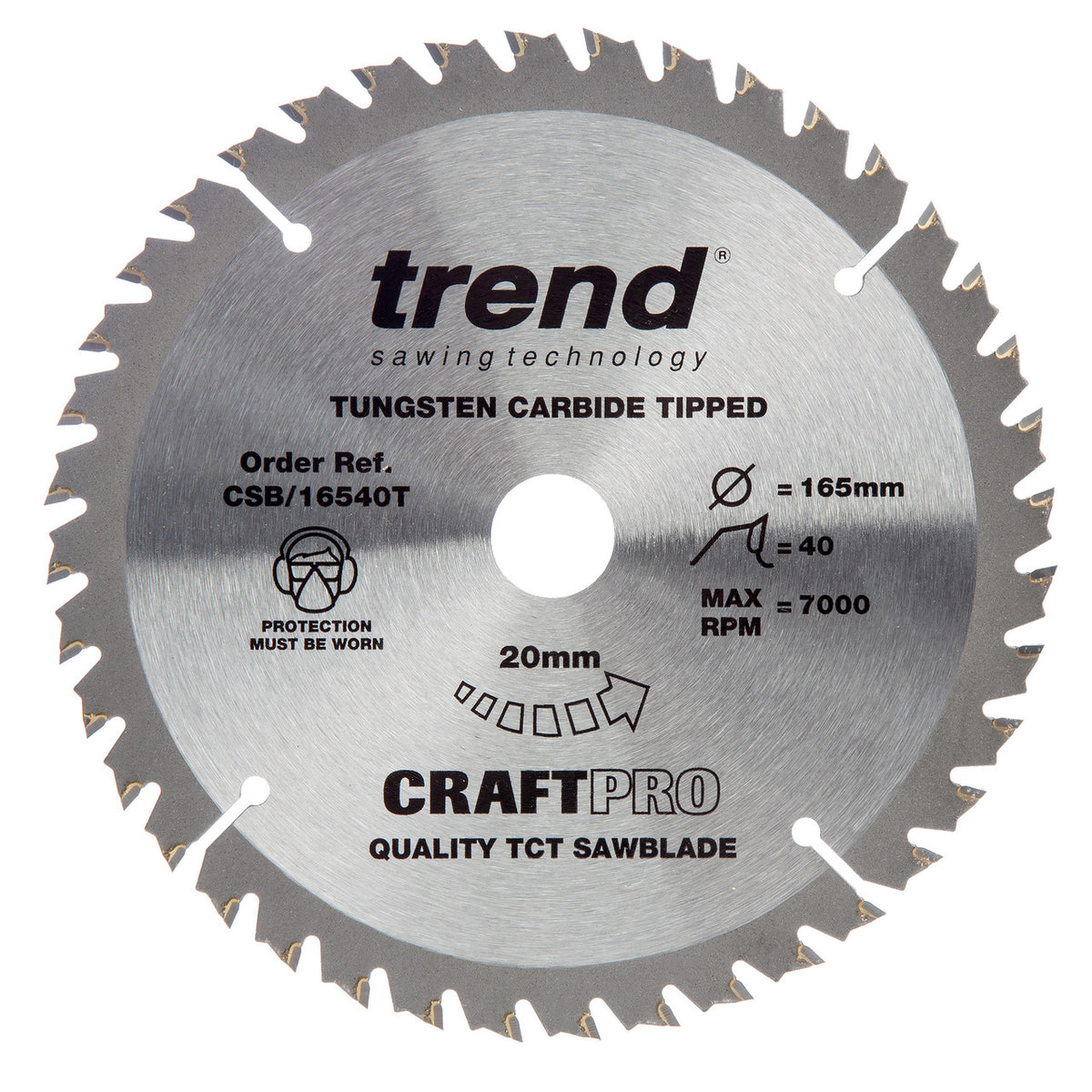 Trend CSB/16540T CraftPro Saw Blades for Wood 165 x 20mm x 40T (Pack Of 10)