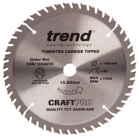 Trend CSB/16548B CraftPro Saw Blade Crosscut 165mm x 48 Teeth