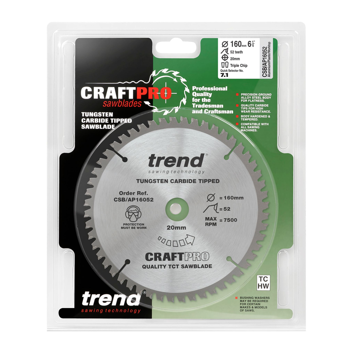 Trend CSB/AP16052 CraftPro Saw Blade for Aluminium & Plastic 160 x 20mm x 52T