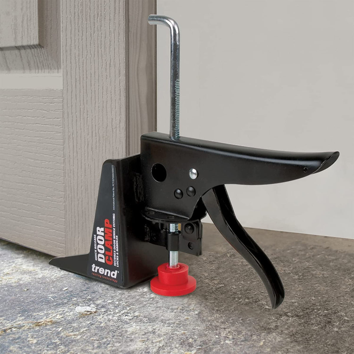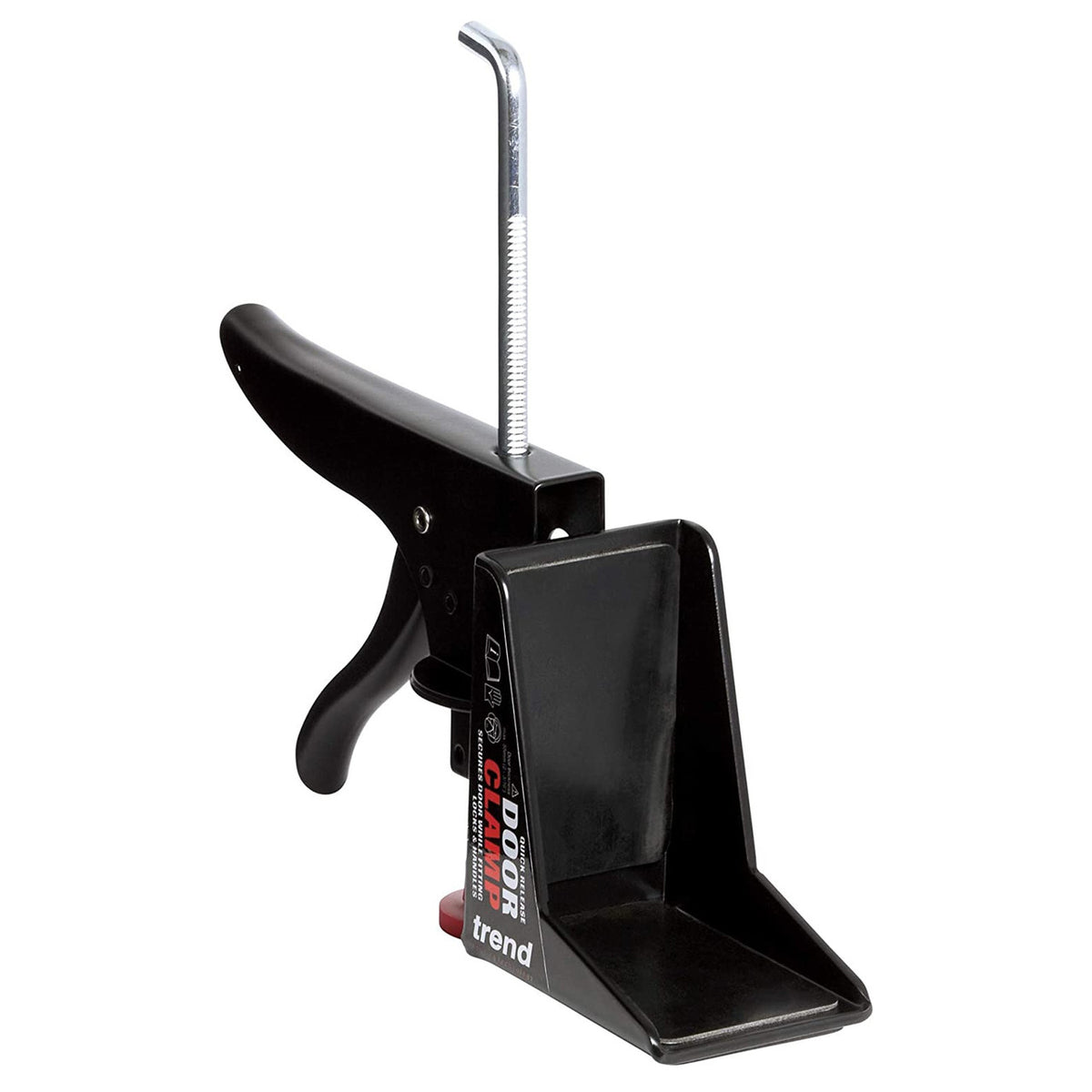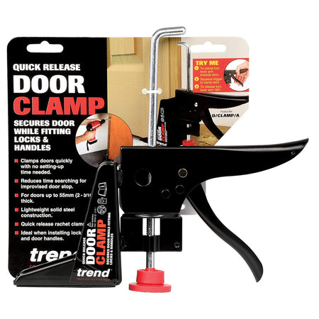 The Trend D/CLAMP/A Quick-Release Door Clamp will hold a door up to 55mm thick in place while drilling or fitting locks. A simple solid metal construction with a ratchet lever to raise and a lever arm to release.