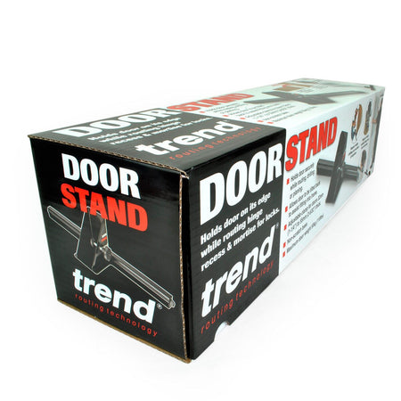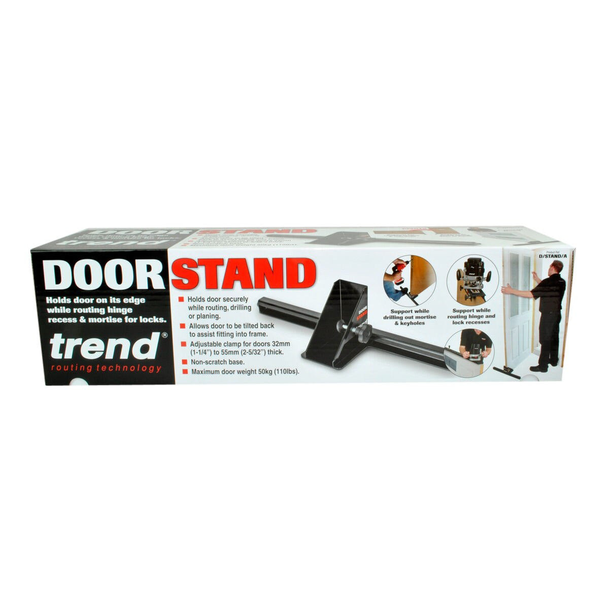 The Trend D/STAND/A Door Stand is designed to hold doors on their edge while routing hinge recesses and mortise for locks. The D/STAND/A features a non-scratch base and has an adjustable clamp to fit doors between 32mm and 55mm thick.