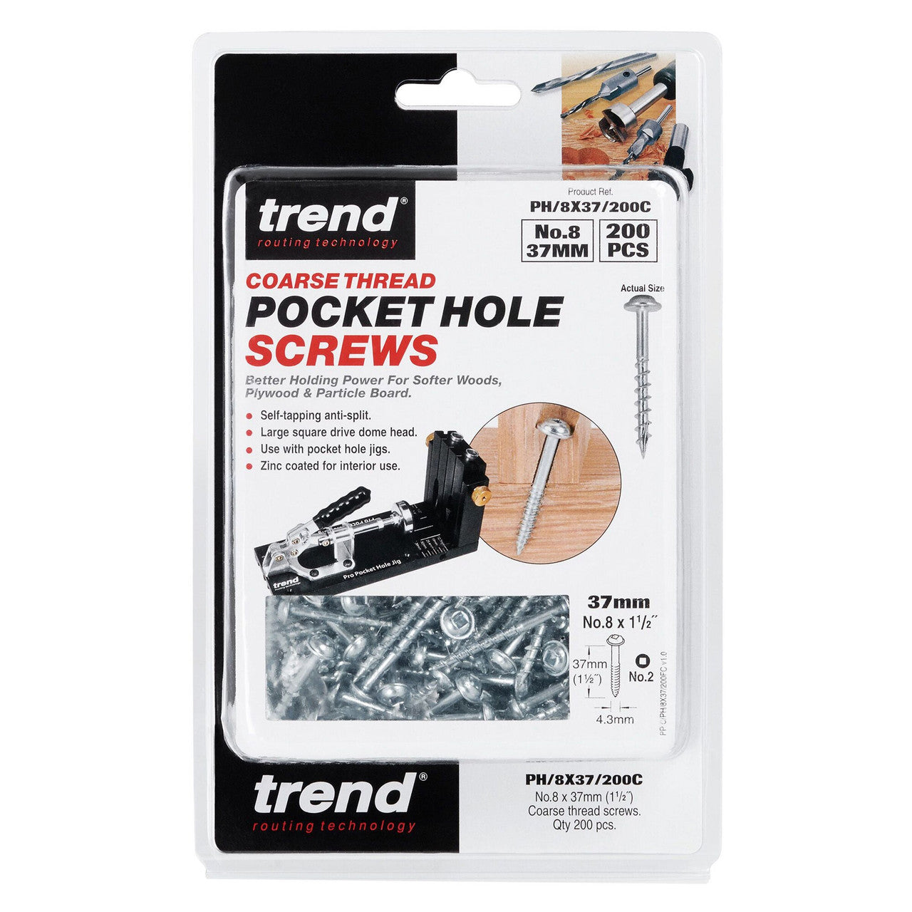Trend PH/8X37/200C 37mm No 8 Pocket Hole Coarse Screws (Pack Of 200)