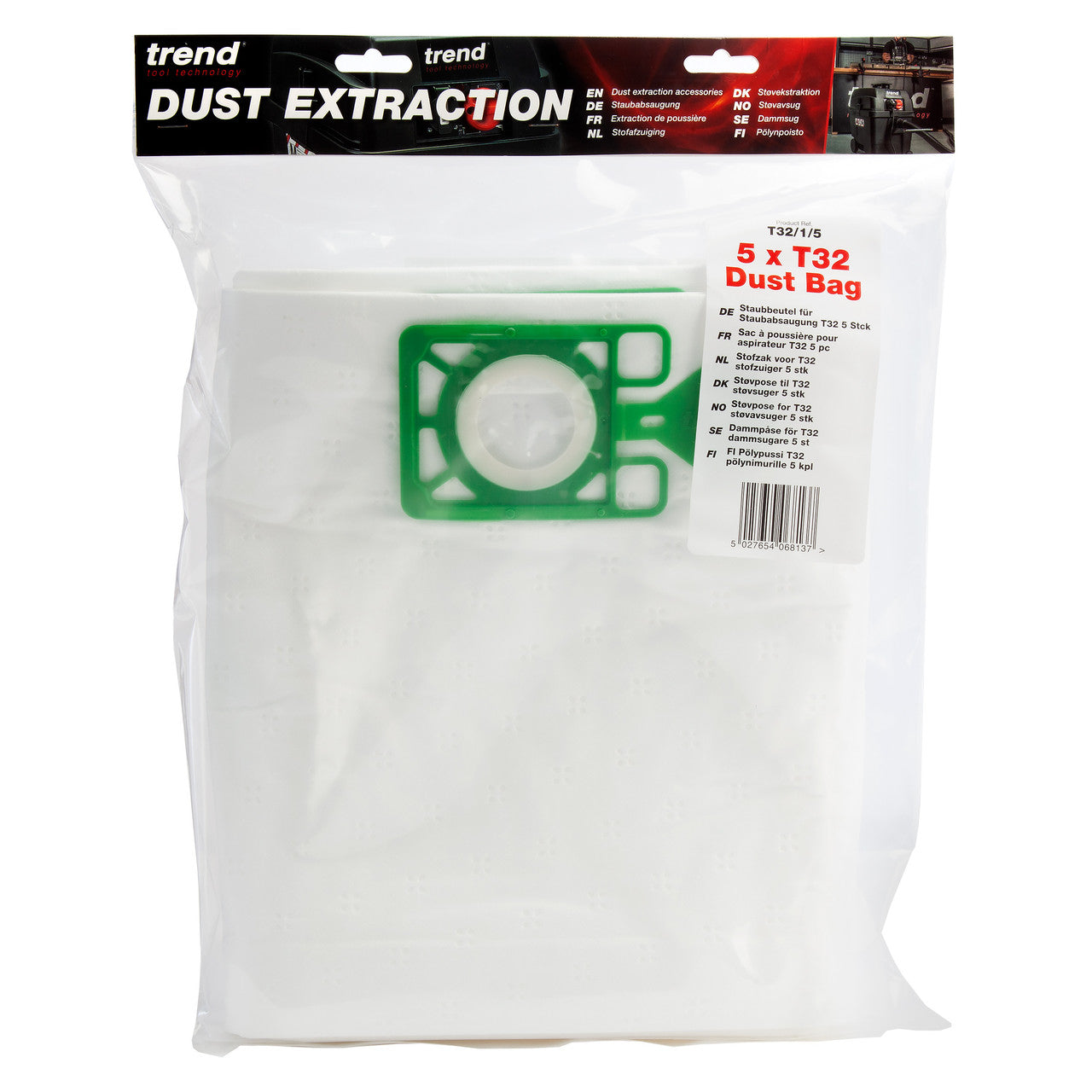 The Trend T32/1/5 is a Pack of 5 Micro filter material bags for dry use only on Trend T32 & T33A dust extractors.