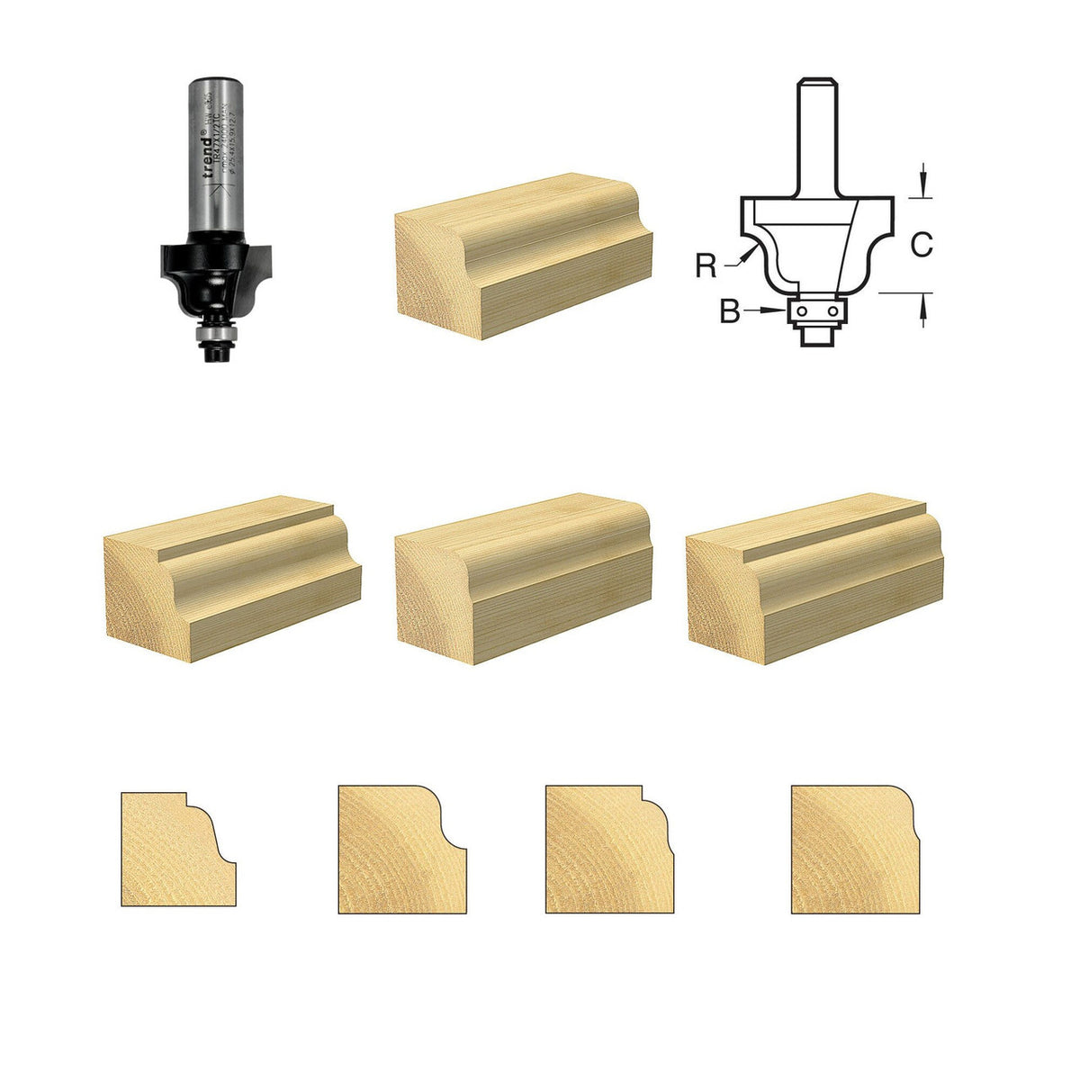 The Trend TR47X1/2TC Roman Ogee features 2mm micrograin Tungsten Carbide tips, for cutting the most abrasive materials and give extra long life.