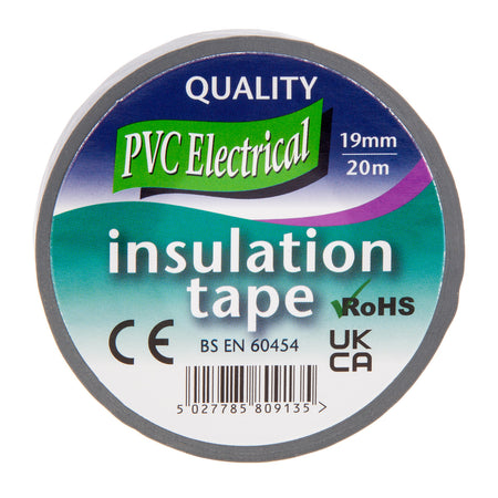 This PVC Electrical Insulation Tape is Grey in colour and measures 19mm wide x 20 metres in length. The professional tape is designed for insulation of electrical wires and comes in a full range of British Standard colours, including the new legislation colours of grey and brown.