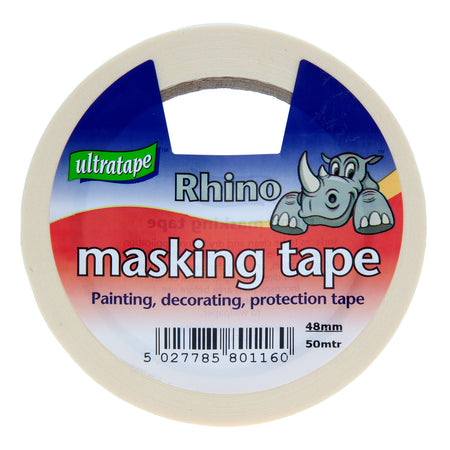 The Ultratape 00524850RH Rhino is a 48mm x 50m General Purpose Masking Tape great for use on painting and decorating applications. Save time by masking walls when painting skirting boards and spraying cornices. Also can be used for protecting areas on a vehicle when carrying out bodywork repairs.