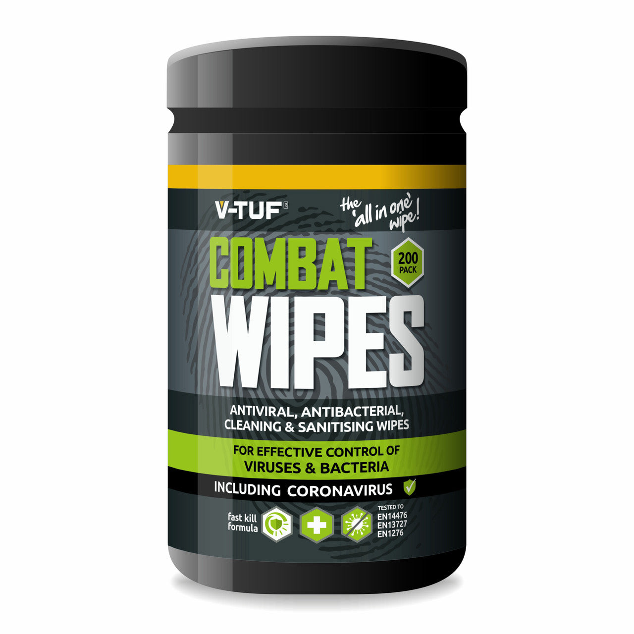 The ‘ALL–IN-ONE’ – Surface Cleaning Wipes laced with Aloe Vera for added skincare & protection. V-TUF Antibacterial & Virucidal Wipes offer a high-performance cleaning and sanitising action, tested to protocol EN14476, EN13727 & EN1276. These brand new wipes from V-TUF offer a high-performance cleaning and sanitising action, providing 99.999% efficiency against a broad spectrum of microorganisms that can lead to contamination. They are laced with Aloe Vera for added skin protection and leave behind no sticky residue like other brands of antibacterial wipe. They are also known to be tough on grime, grease & dirt, cleaning surfaces quickly and effectively. They are safe to use on all surfaces, have been dermatological tested, and are trusted and used in the healthcare sector. This is not to mention their pleasant scent!