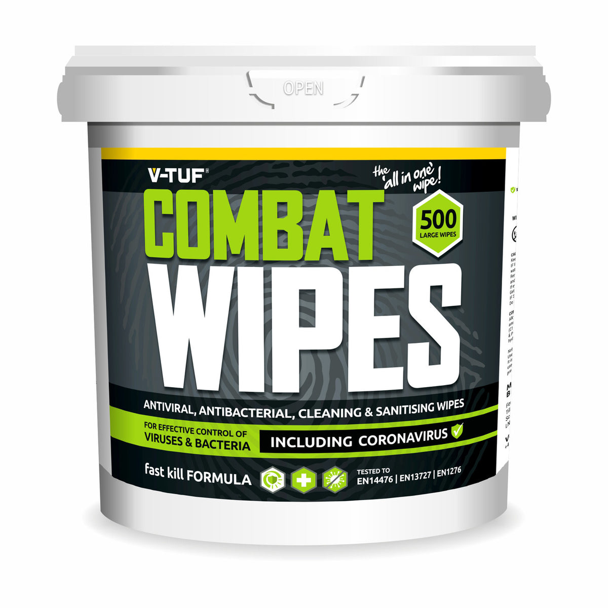 V-TUF VTABW-500 Bucket of Combat Wipes Antiviral Antibacterial (500 Wipes)