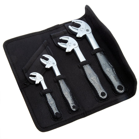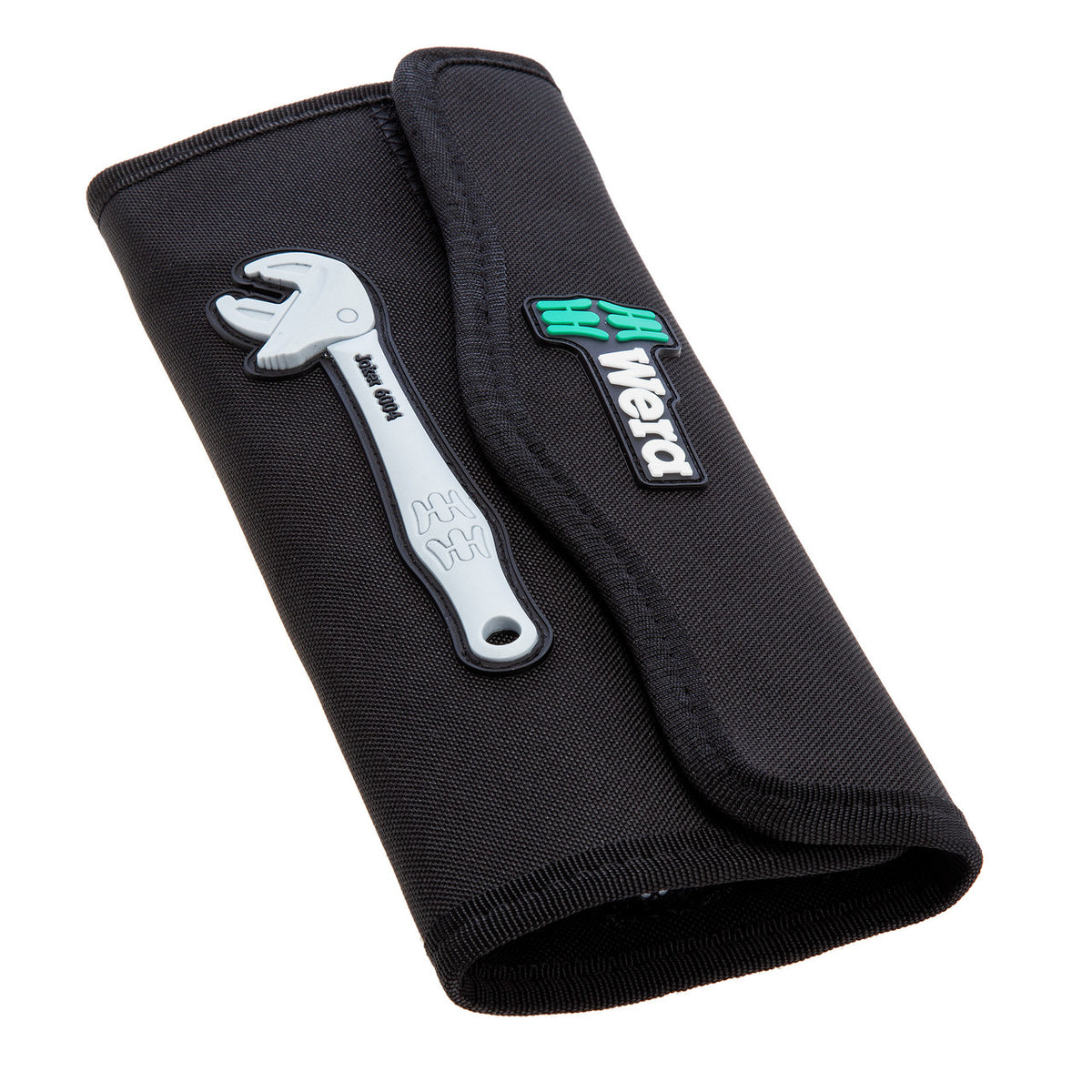 The Wera Joker 4 Spanner Set comes in a folding pouch covering all metric and imperial sizes between 7-19mm or 1/4 - 3/4 Inches. Users wish to have a universal tool with the widest possible range of applications in metric and imperial dimensions at high working speeds. The Joker 6004 replaces several single-spanner sizes when attaching the tool to the hexagon bolt or screw. An integrated lever mechanism clamps the bolt significantly reducing slippage or damage. A handy ratchet means you don't need to remove the tool. The single-arm design, and the corner-width prism, make it possible to work in confined spaces.