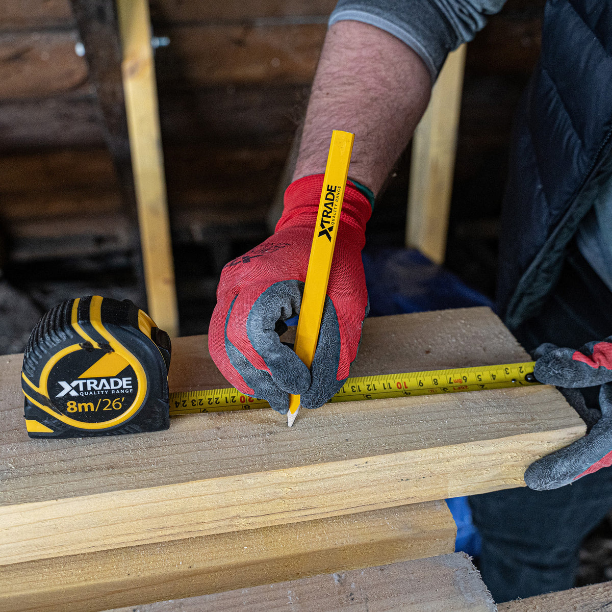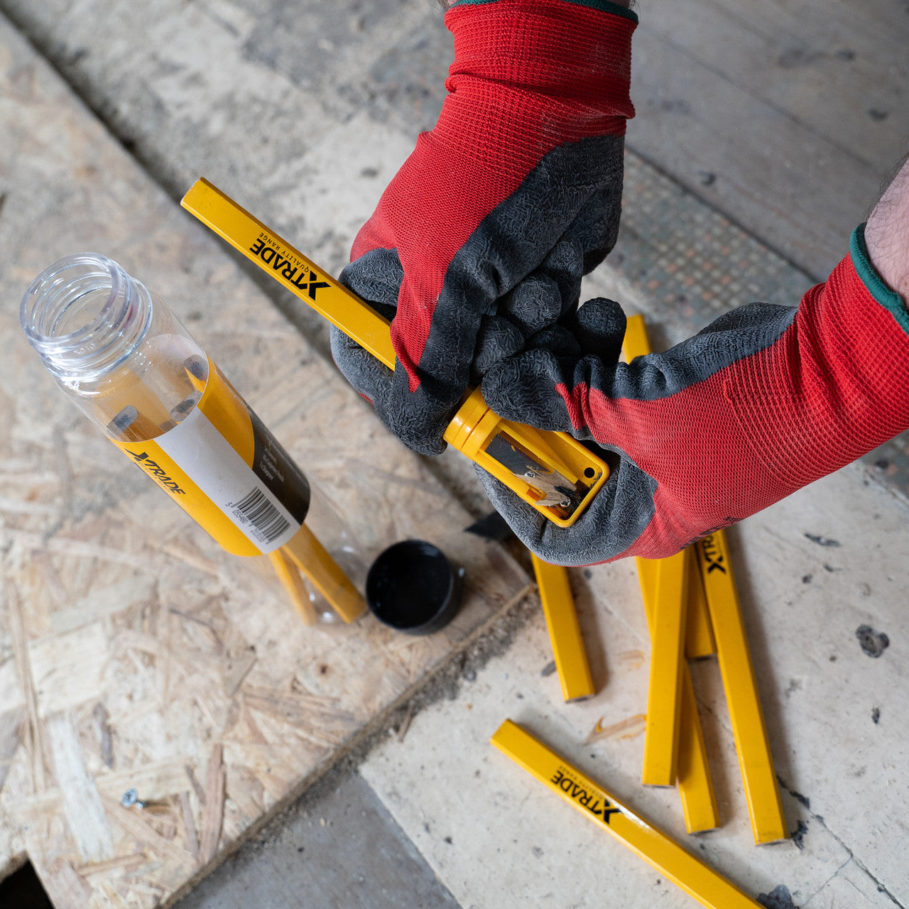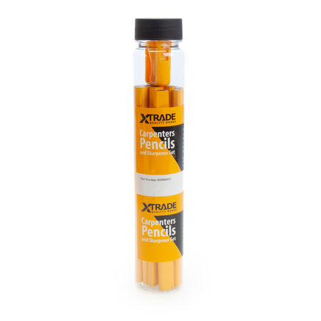 The XTrade X0900005 is a box of 12 sets of carpenters pencils with a sharpener. The pencils are medium hardness (HB), suitable for all general carpentry. The included sharpener will fit all types of carpenters pencils. In total 120 pencils and 12 sharpeners divided into 12 boxes.
