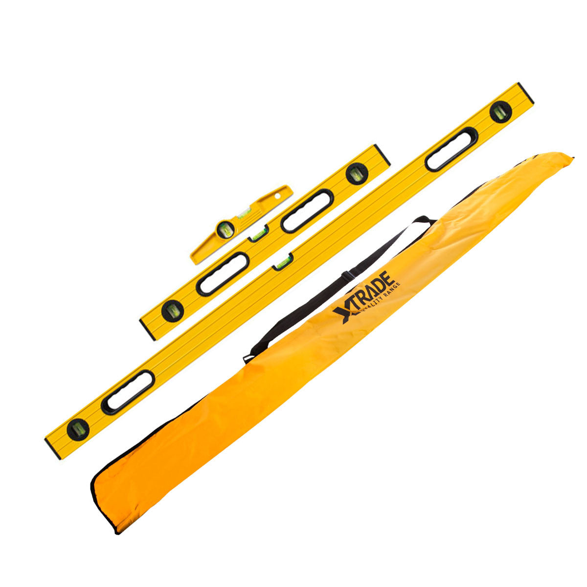 This X Trade level set contains 3 large spirit levels and a handy X0900013 carry bag