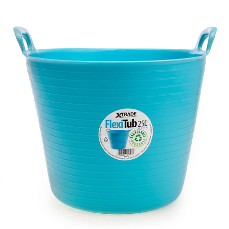 The Xtrade X0900104 Blue FlexiTub has a 25 Litre capacity with an almost endless amount of uses. Because of their shape, the FlexiTub buckets stack inside each other for neat storage. The buckets are moulded in one single piece with 2 strong carry handles for ease of transport and user comfort. The Tub is environmentally friendly, made from 100% Recyclable and Reusable Virgin Plastic, with no harm to nature. Could be used in the building trade, for gardening, or domestically as a washing basket. The list goes on and on.