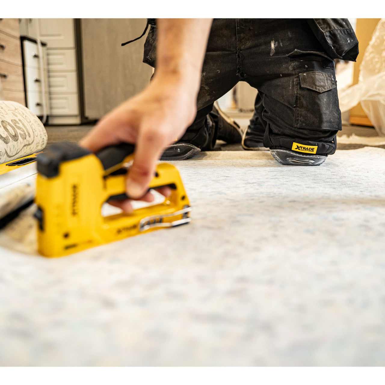 The XTrade X1900001 are a pair of Non-Marking and Anti-Slip Gel Filled Knee Pads. With a contoured shape and a durable fabric lining and a thick foam layer for comfort. One size fits all with 2 Neoprene adjustable straps. Suitable for applications such as concreting, roofing, tiling, flooring, gardening and other general construction.