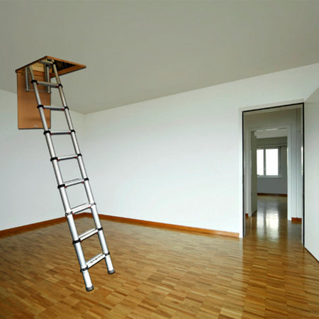 The Werner 301001 2.9m Telescopic Loft Ladder is ideal for small hatches with minimal storage space and is easy to install and operate. Designed to be able to fit a rough opening of as little as 0.60m x 0.51m. This ladder features automatic locking system, extra wide treads and rubber feet for safety and protection to flooring. Capable of a maximum load capacity of 150kg or 23.6 Stone and tested in accordance with EN 14975.